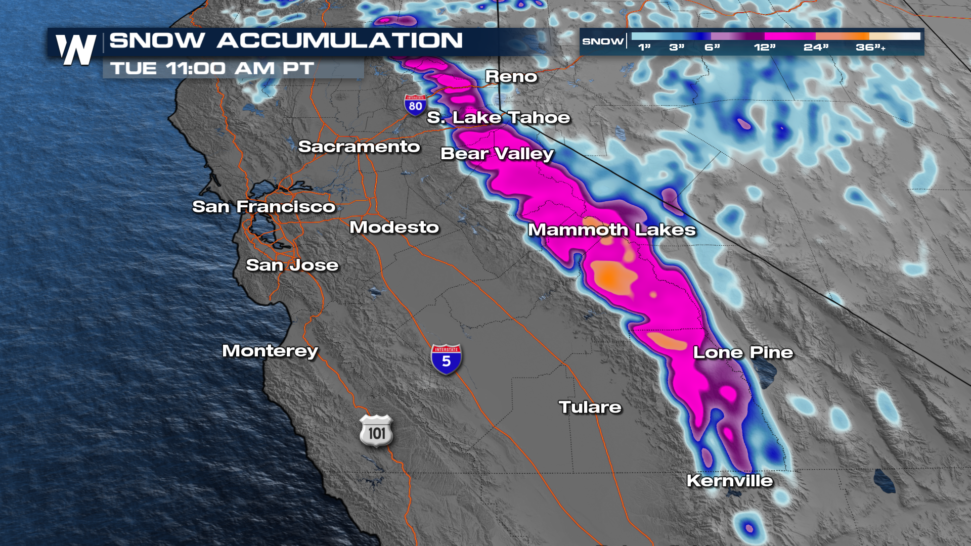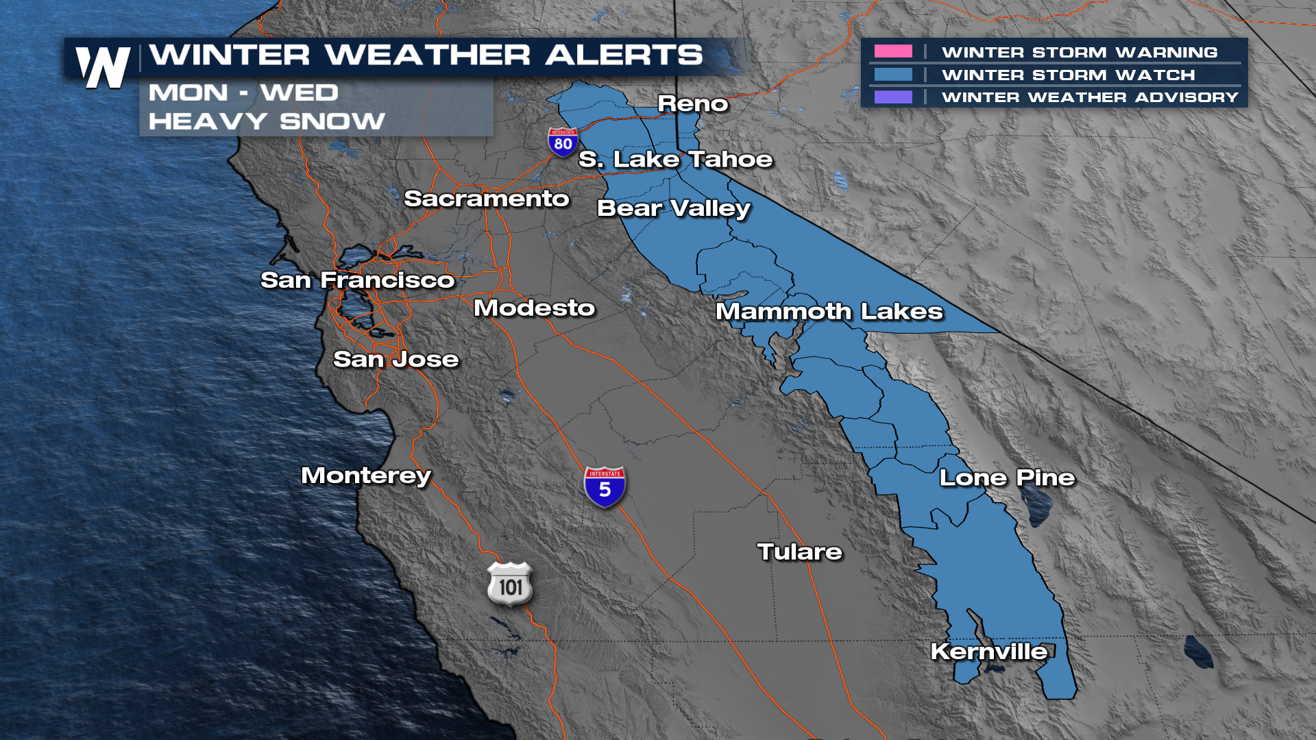 Winter Storm Watches have been issued for the Sierra Nevada, including South Lake Tahoe and Mammoth Lakes. The latest model runs suggest multiple feet of snow could fall in favored areas!