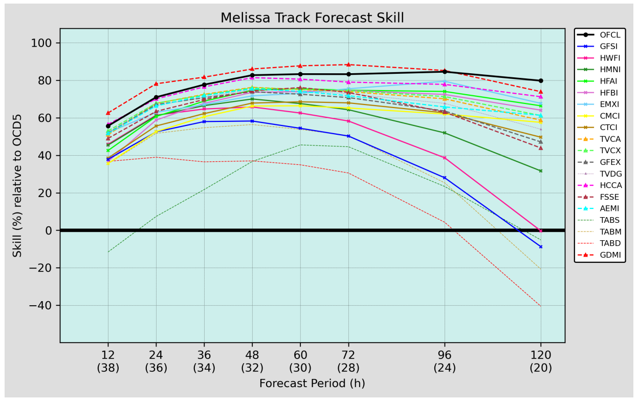 The origins trace back to a tropical wave emerging off of the western coast of Africa on October 13th. By midnight on the 26th, Melissa had rapidly developed into a major hurricane. With weak steering, the forecast track was HIGHLY uncertain. Even with this uncertainty, the forecast track was incredibly accurate by the National Hurricane Center (below)