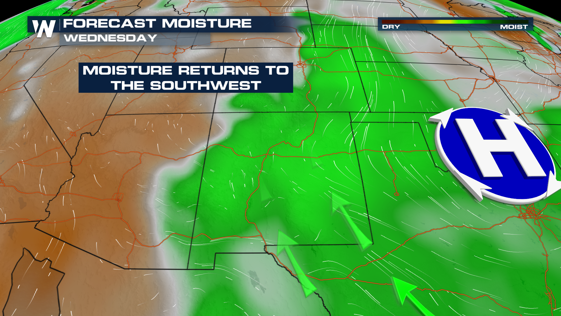 Moisture from the Gulf is forecast to ride around a ridge of high pressure into New Mexico and the Front Range.