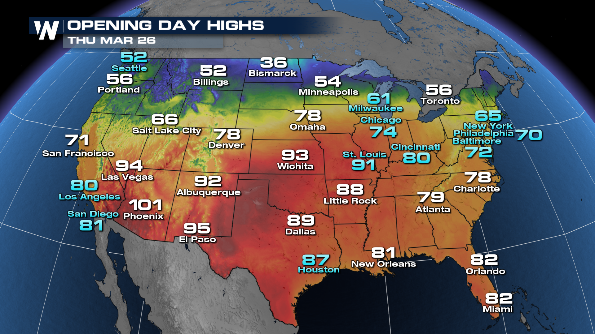 We finally made it! Out of Winter and into Spring, which means allergies, and America's Pastime! However, this might not feel like Opening Day for everyone: some will see toasty temperatures that remind us of the Dog Days of Summer already, but others might have to contend with some rain delays.