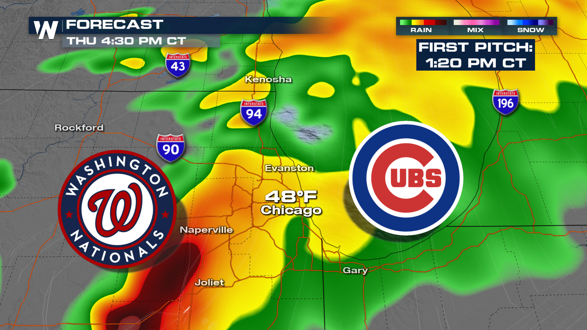 A bigger concern might be the Cubs in Chicago for an outright delay. Late morning rain turning into some rumbles of thunder could mean some delays in the proceedings.