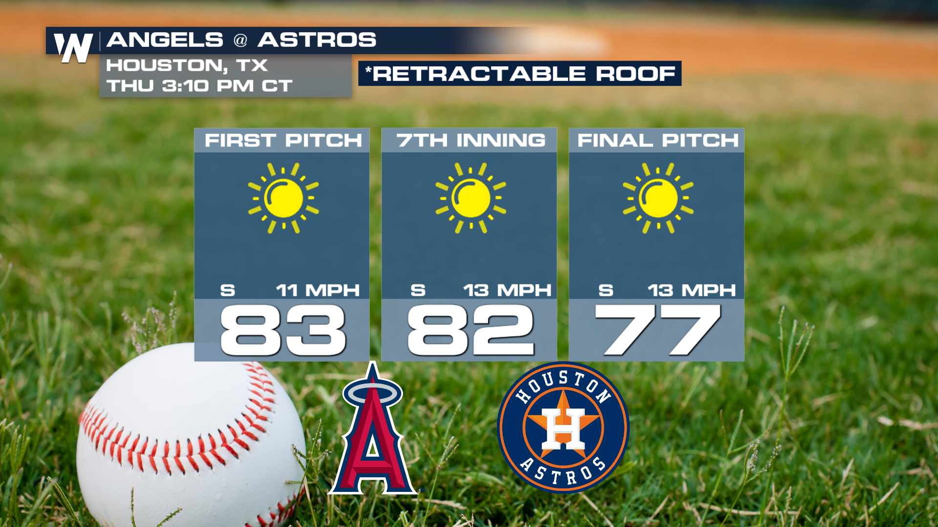 If your first official ballgame isn't being played in the Midwest, you should be okay! Head far enough down south and you shouldn't run into any issues at all for the Angels vs Astros game!