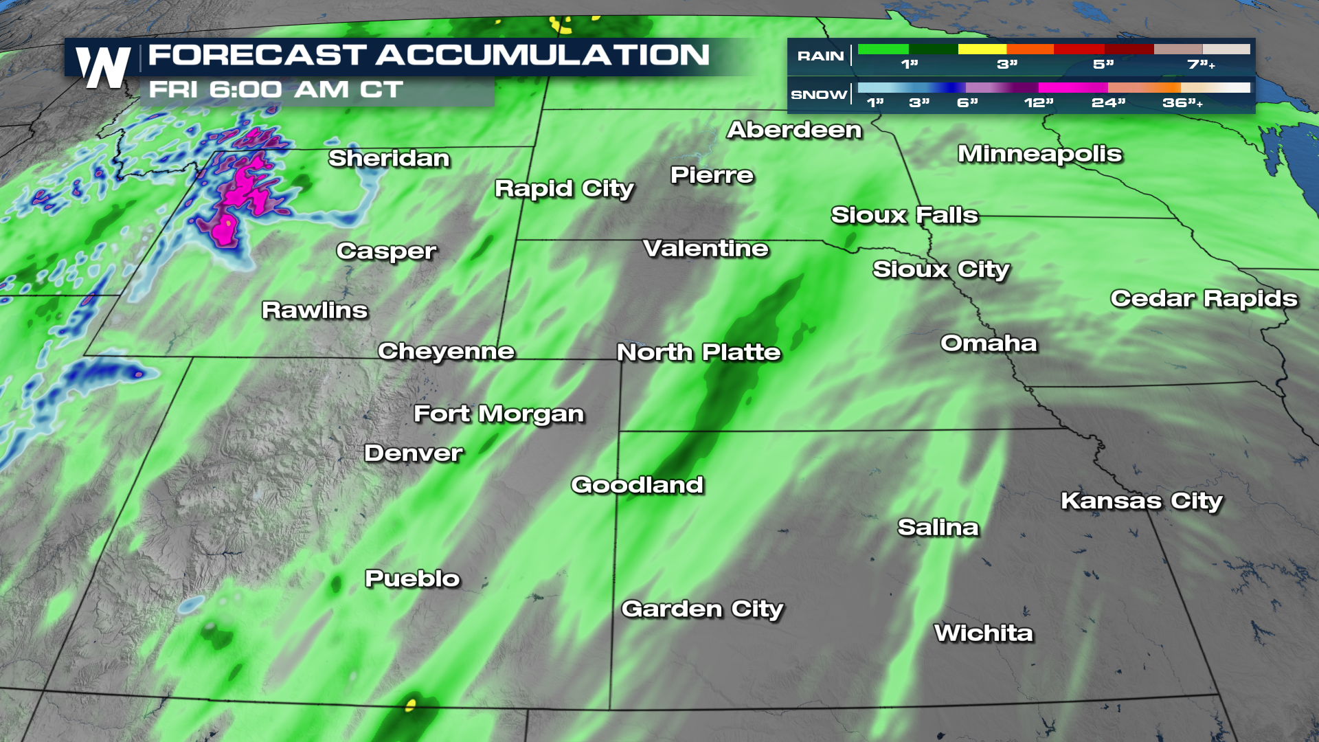 Forecasted rainfall totals look to be highest across central Nebraska, where some may receive 1-1.5" of rainfall with isolated higher amounts.