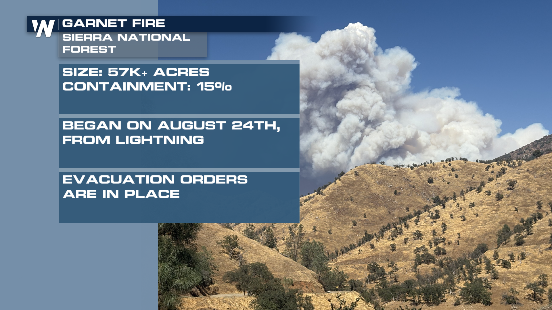 CALIFORNIA - Wildfires in the western U.S. continue to burn, impacting air quality across much of the country. The Garnet Fire, which began in the Sierra National Forest on August 24, 2025, has prompted a partial forest closure near the fire.