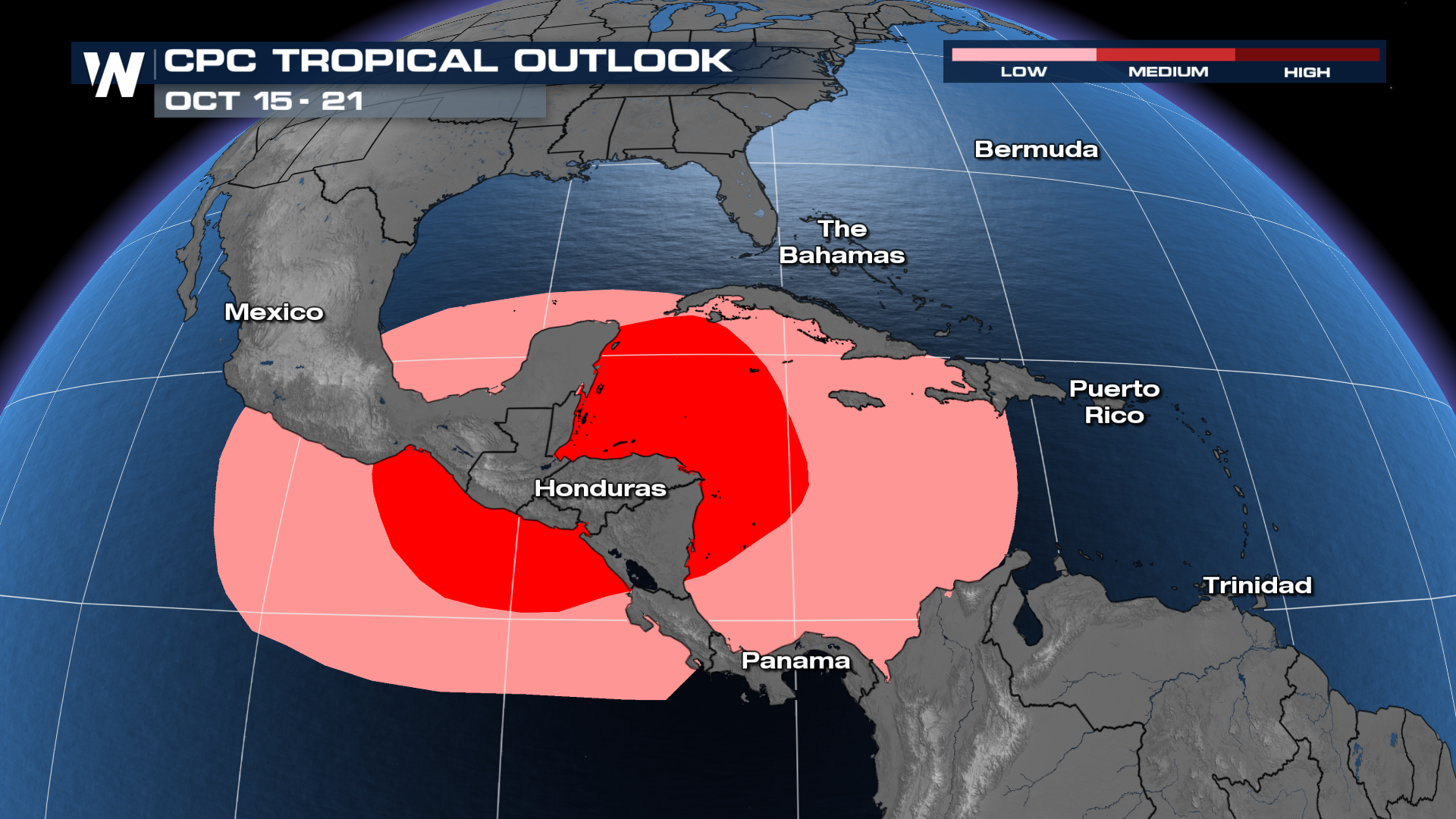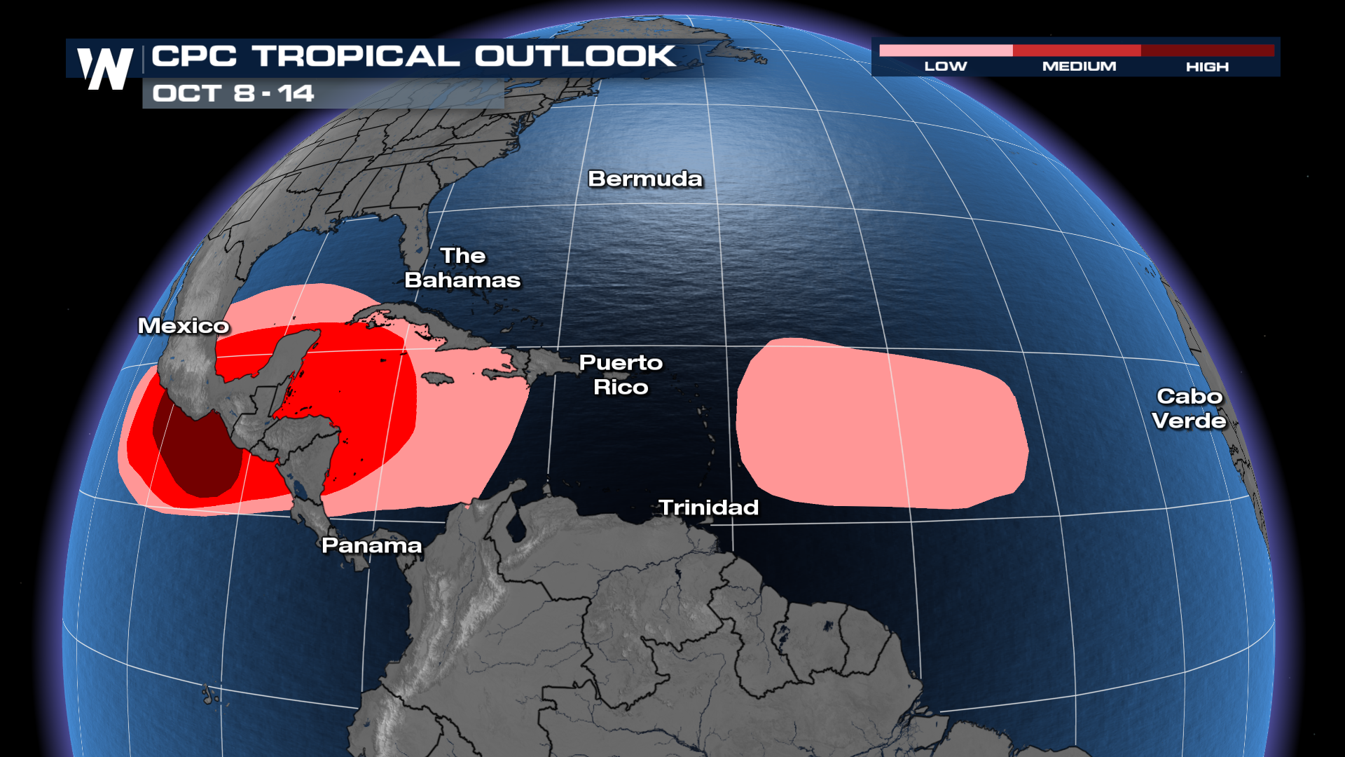 The Climate Prediction Center (CPC) has outlined a few regions with chances for tropical development through the middle/end of October.