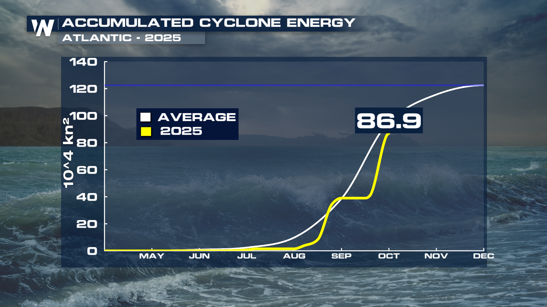We are now past the climatological peak of Atlantic Hurricane Season, but still have a ways to go for the season. For being such a quiet season, the normal amount of Accumulated Cyclone Energy, a metric to quantify activity, is not far off. Two category 5 hurricanes will boost those numbers, though.