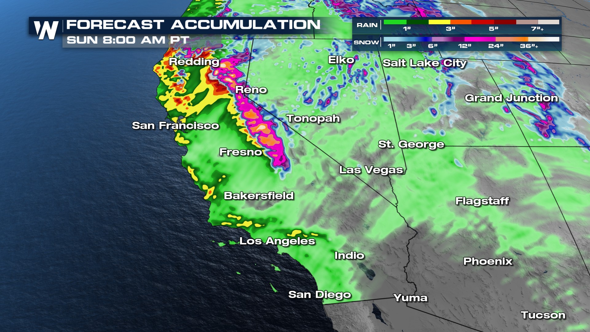 Models indicate additional heavy snow for the Sierra Nevada Mountains, with several inches of rainfall possible for California. Just one week ago, Southern California saw major flooding. These areas will be more susceptible to additional flooding with the recently saturated soils.