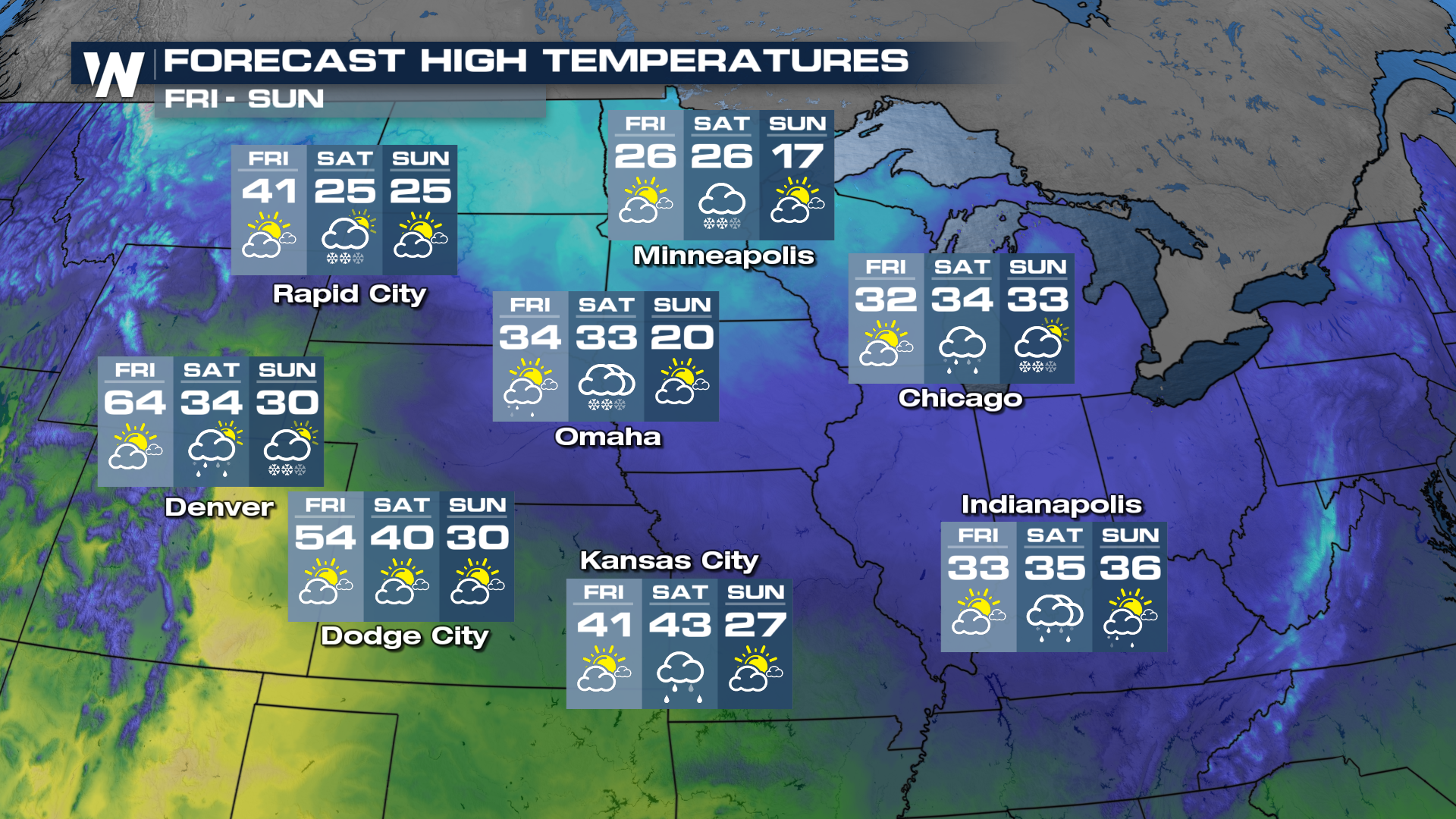 This system will also bring the coldest air of the season so far, as temperatures will struggle to warm above freezing for some throughout the weekend. Overnight lows could fall as low as the single digits in some places by Monday morning.