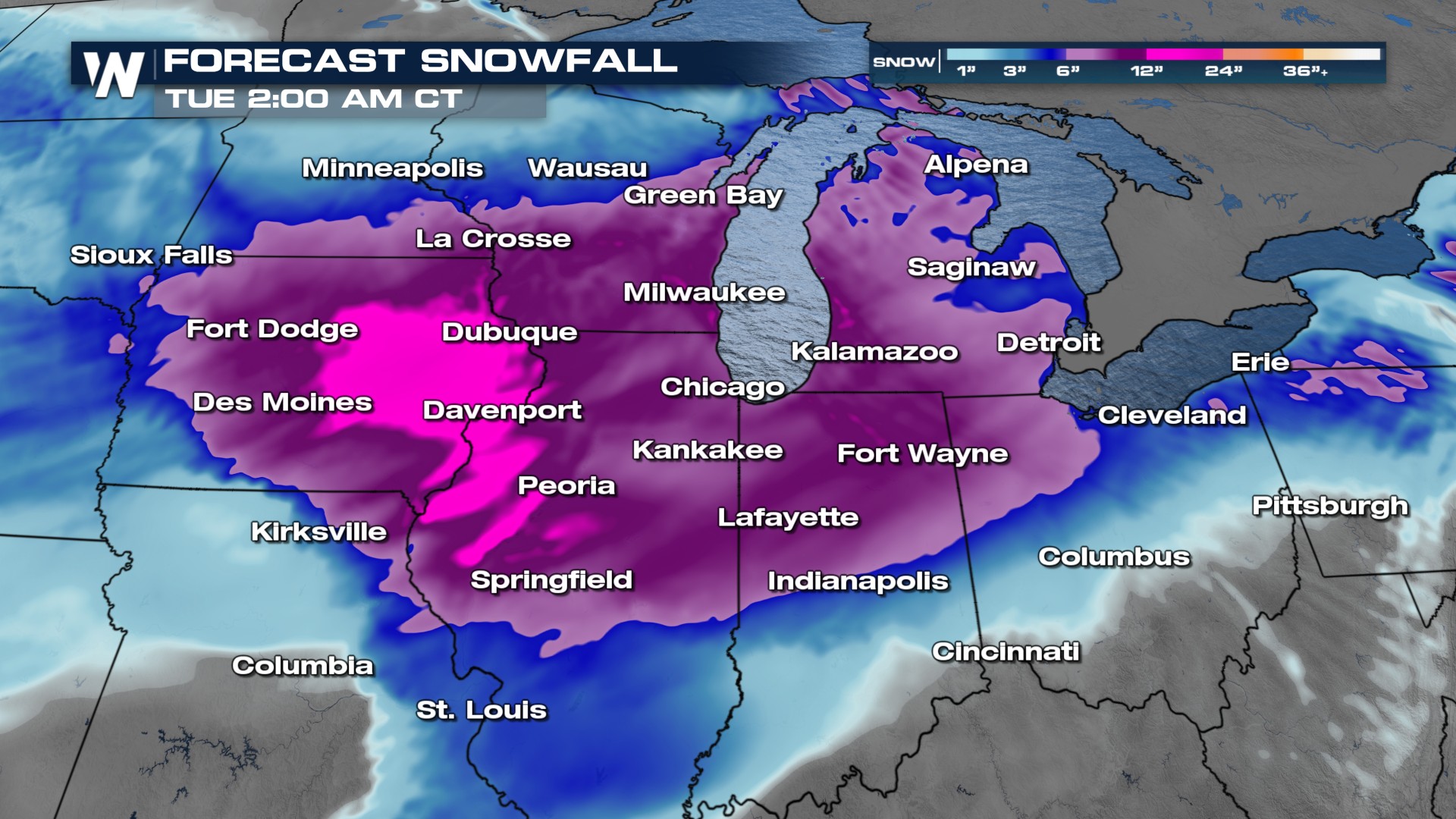 Snowfall totals look impressive, with a wide area picking up more than six inches of snow. The questions remain farther south, where rain is expected to mix in around southern Illinois and into the Midwest.