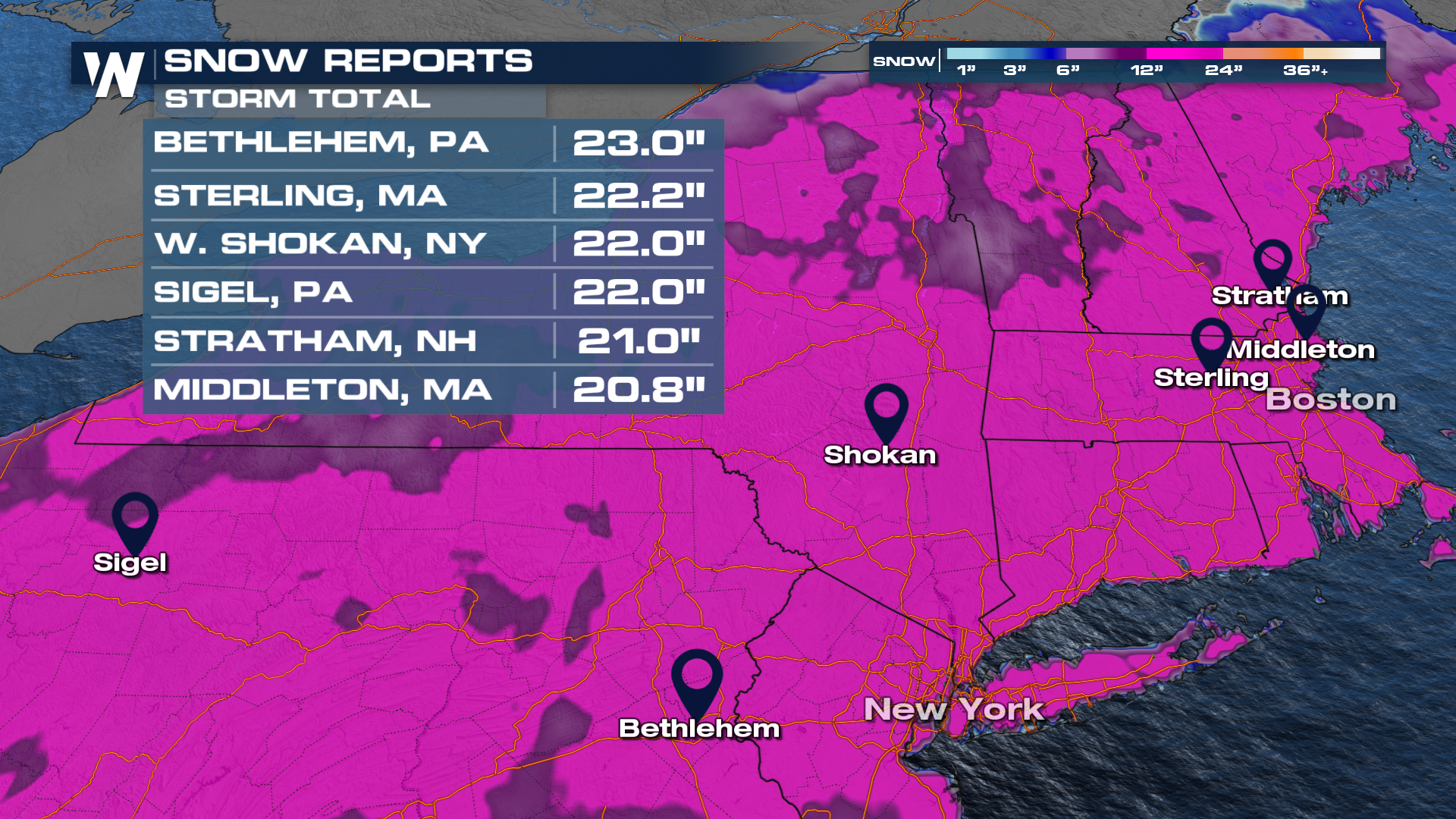In the northeast, this was a snow-only event. Cities near Boston received almost 2 feet of snowfall, resulting in a city-wide snow day on Monday!