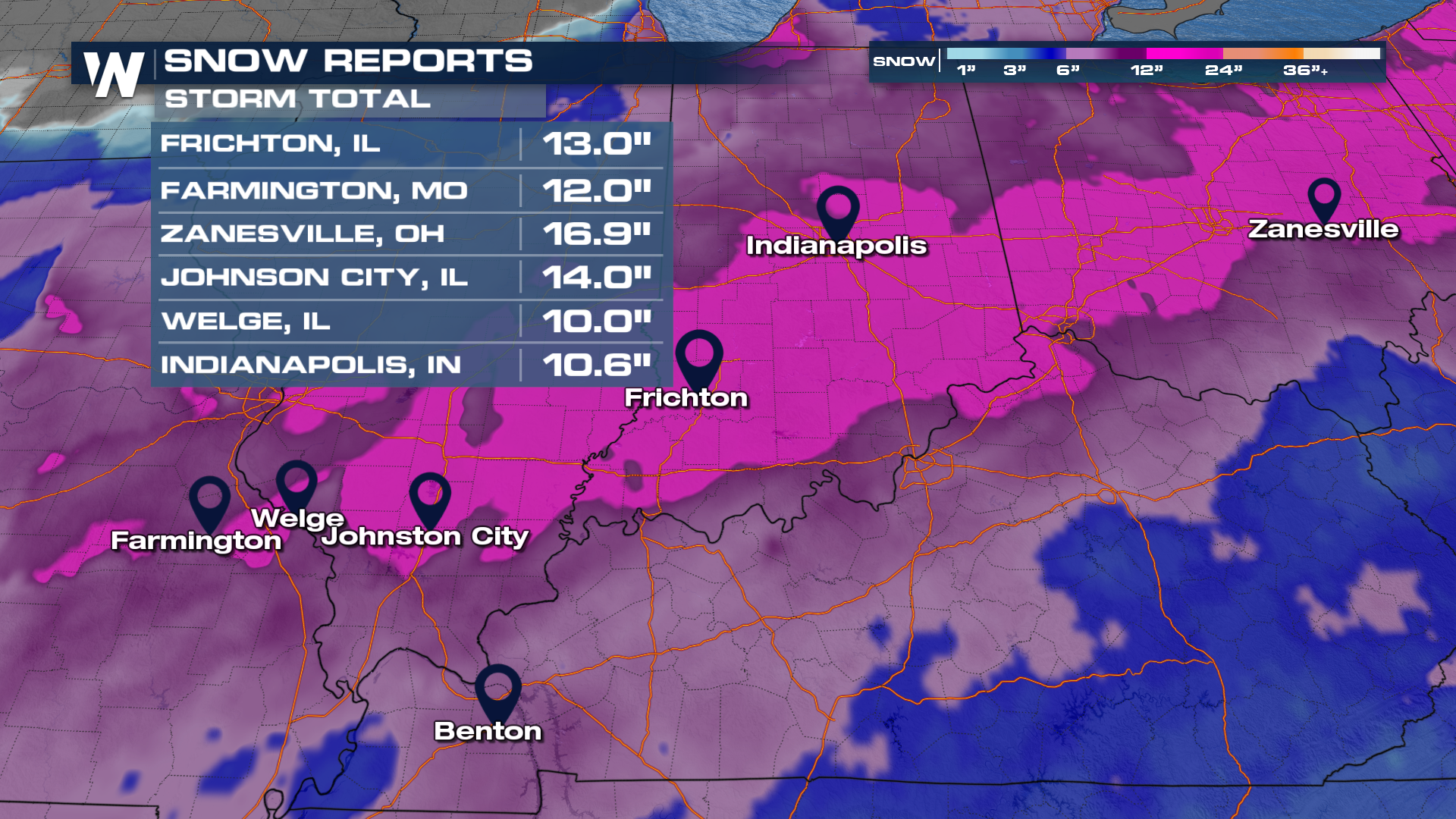 In the Midwest, cities like Indianapolis, Indiana, received over 10 inches of snowfall from this storm.