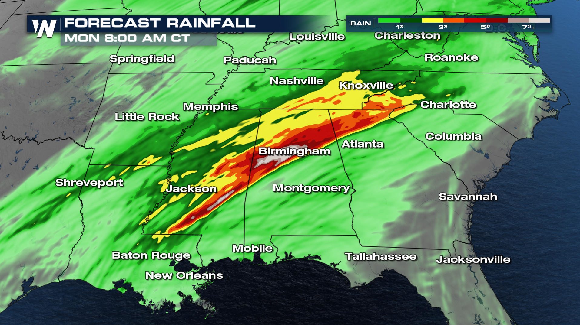 Rainfall rates will increase significantly on Friday across the south, with 1-2" per hour possible, possibly more. This means some areas could receive 4-6 inches in a short period of time, which could lead to flash flooding. A Flood Watch has been issued for parts of the South into Saturday.