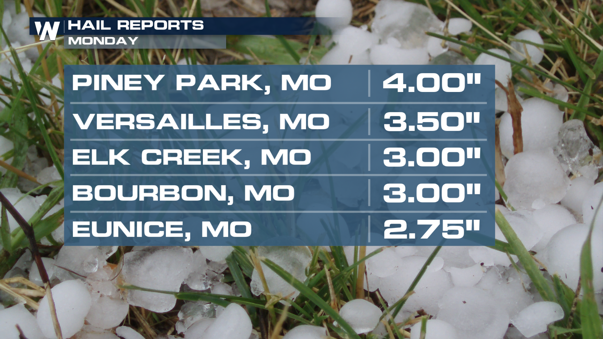 We picked up some pretty large hailstones out of Missouri after this system pulled through. Some reports showed hailstones reaching the size of softballs!