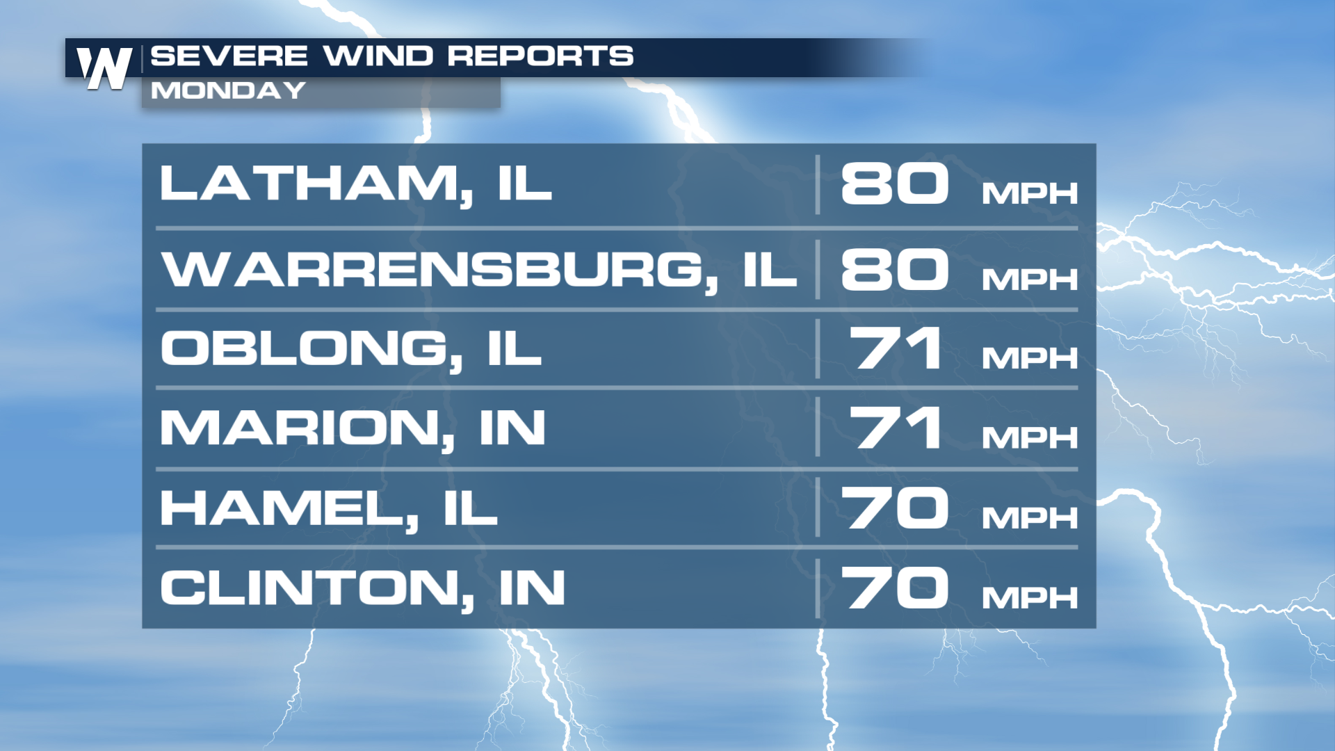 The gustiest winds reported were actually out of Illinois and Indiana. Looking back at the radar from Monday night, it's no surprise, being that we got that defined bow echo.