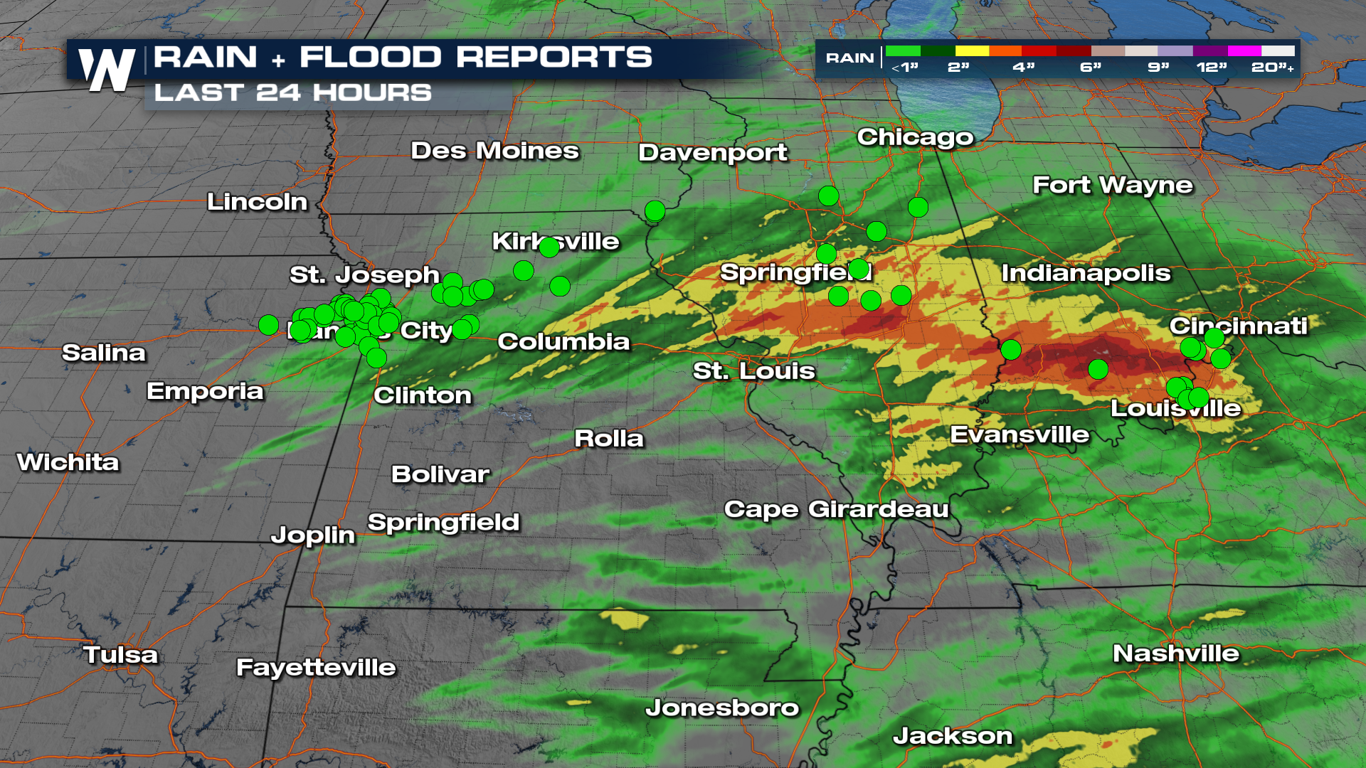 Storms really started to spark up into the early evening. Severe thunderstorm and tornado warnings were firing off into the nighttime hours across Missouri, Illinois and Indiana.