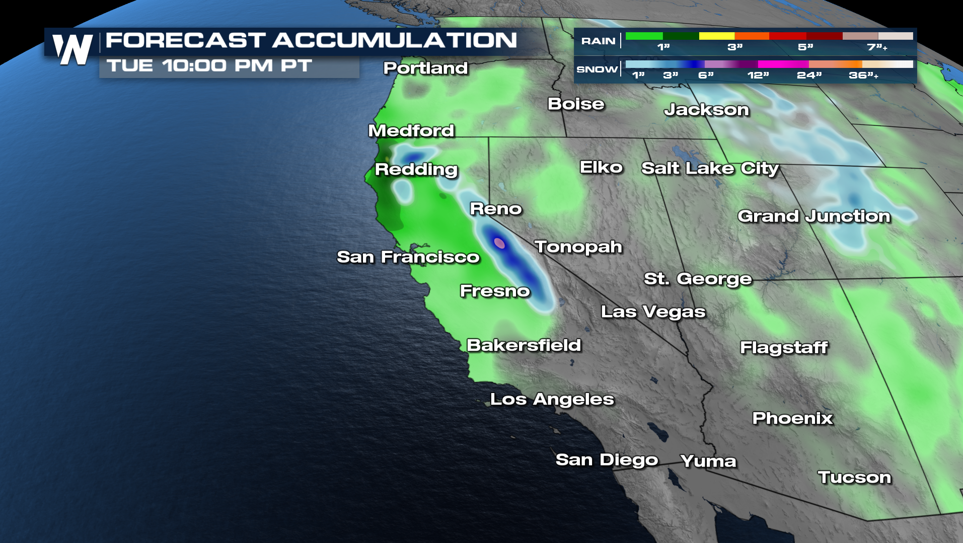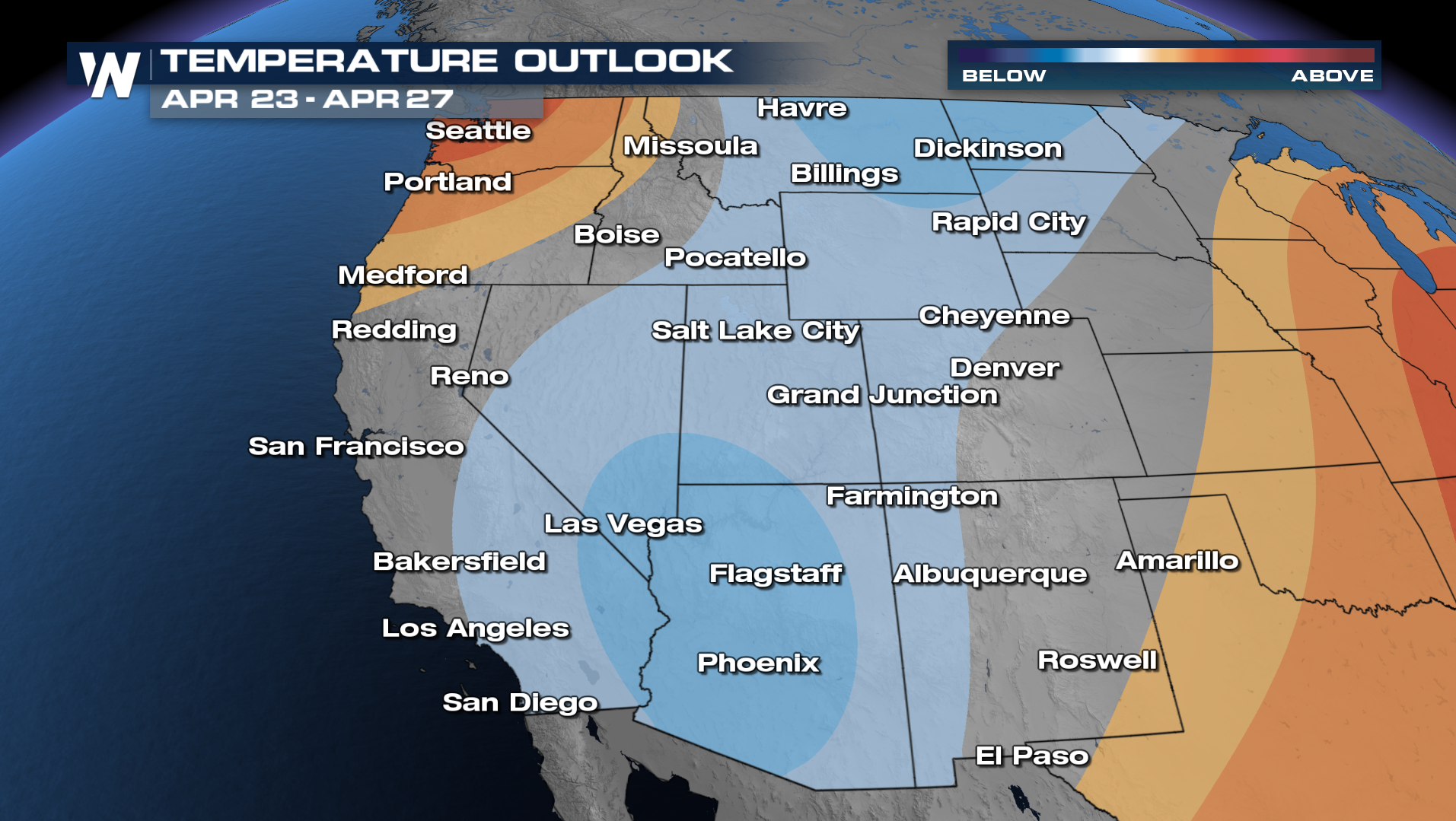 In the next week and half, the pattern should stay stormy which means more potential for snow and rain chances for California and the rest of the West. Temperatures will be slightly cooler than normal!