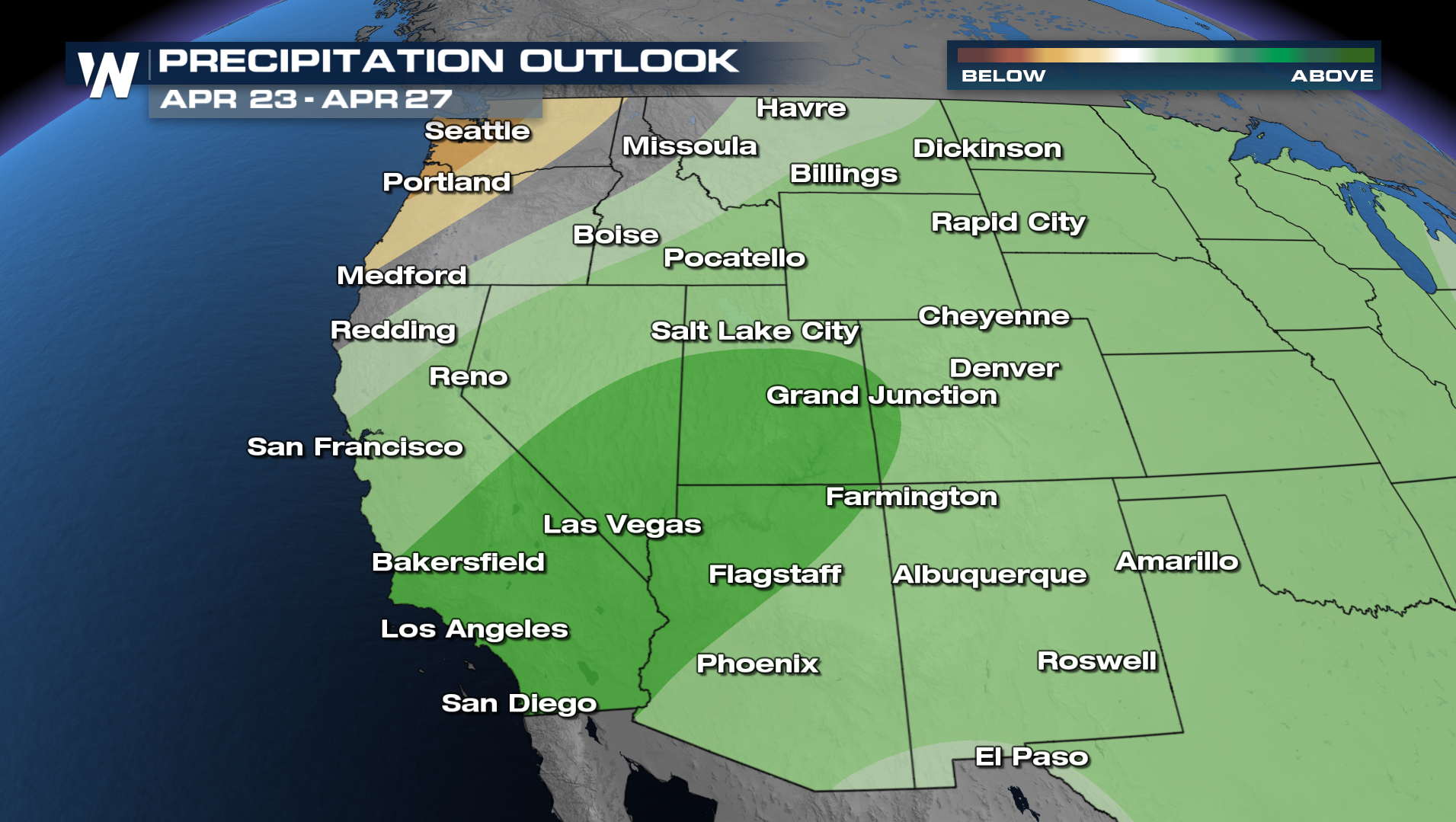 Heavy rain will be possible for Northern California especially Monday and Tuesday where a few inches will possible. As colder air drops for the Sierra, some snow chances will be possible too. Again this is good news as drought has returned to the state following the historic heatwave in March. As the low moves eastward midweek, more moisture should increase across the Rocky Mountain states.