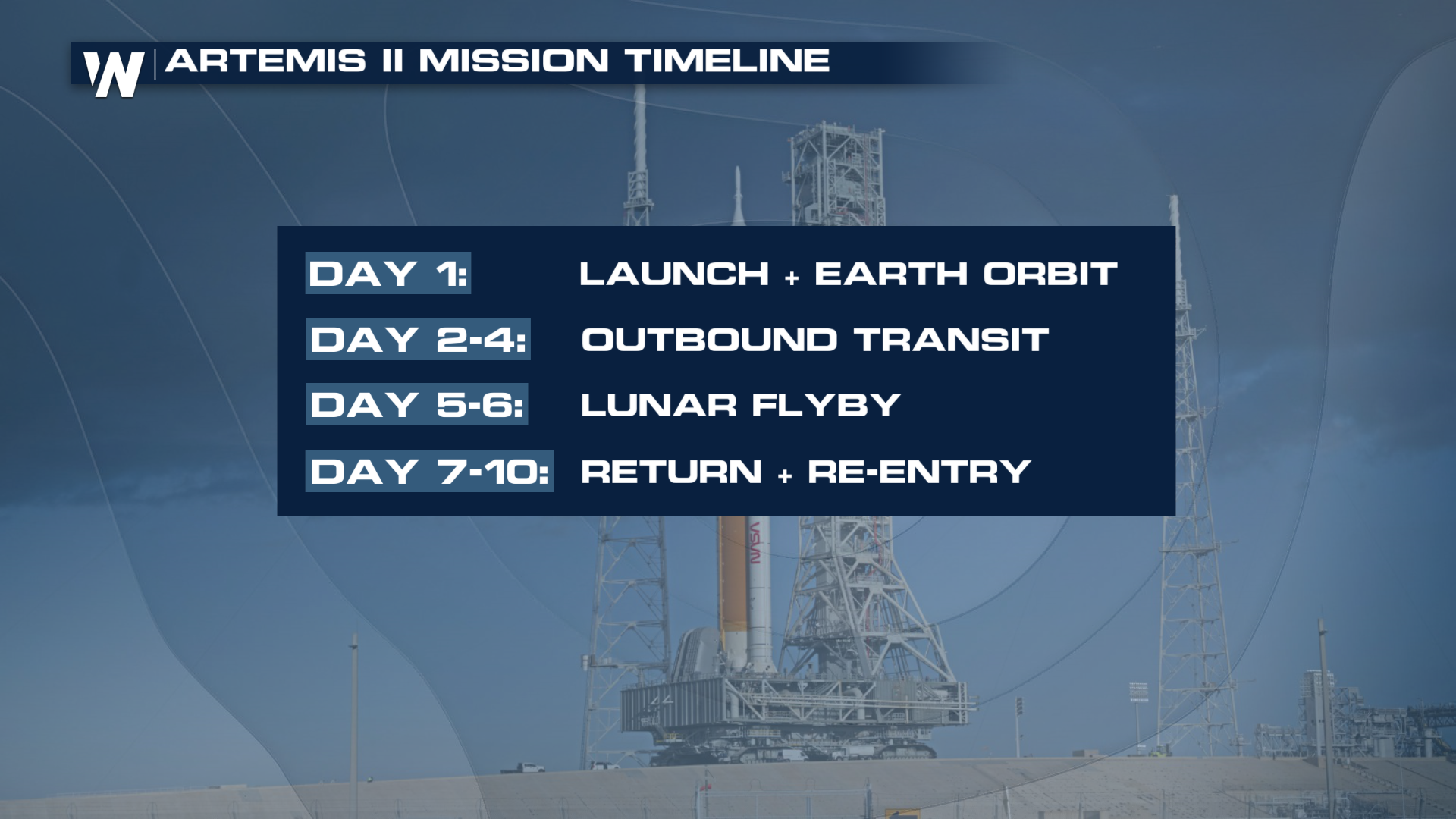 Days 7-10: return trip to Earth, followed by re-entry and splashdown in the Pacific Ocean, where the U.S. Navy will recover the capsule.