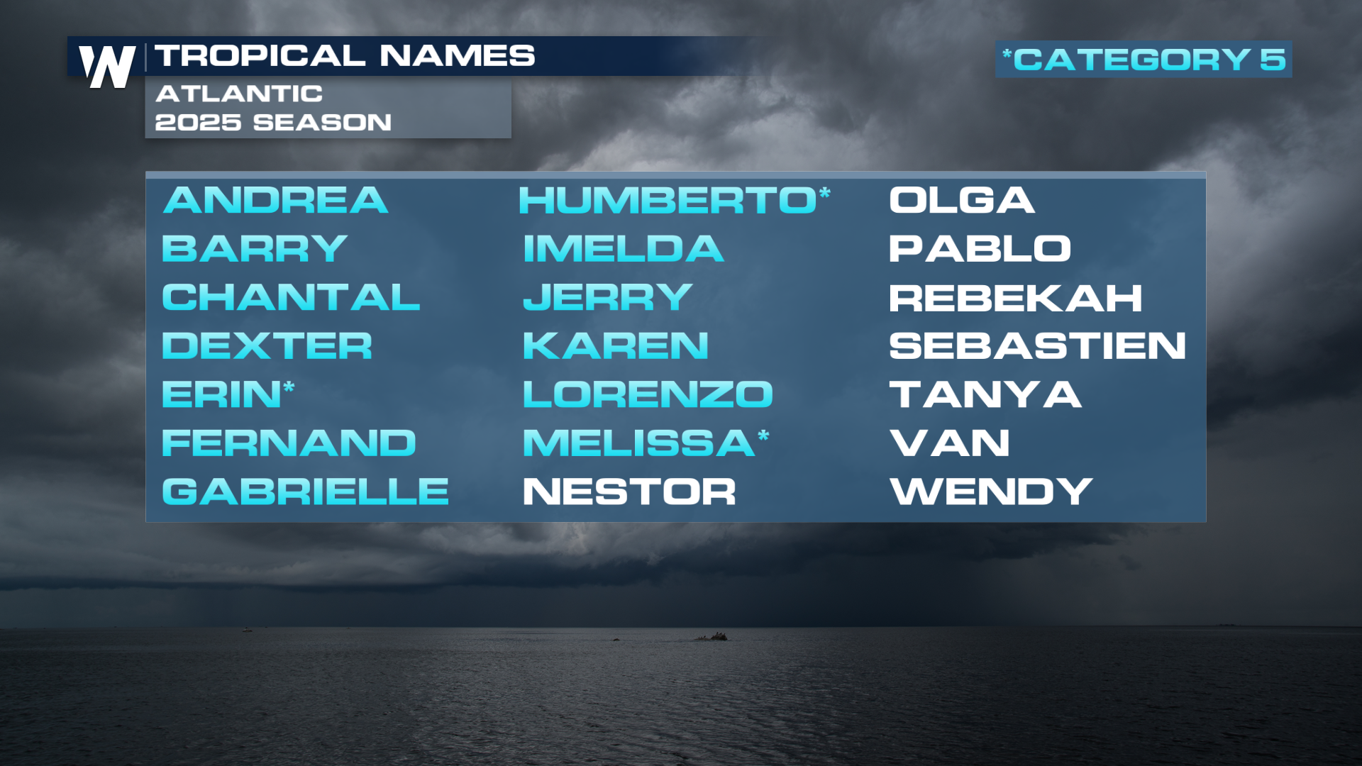 Tropical cyclone names are selected each year by the World Meteorological Organization (online at https://wmo.int/)