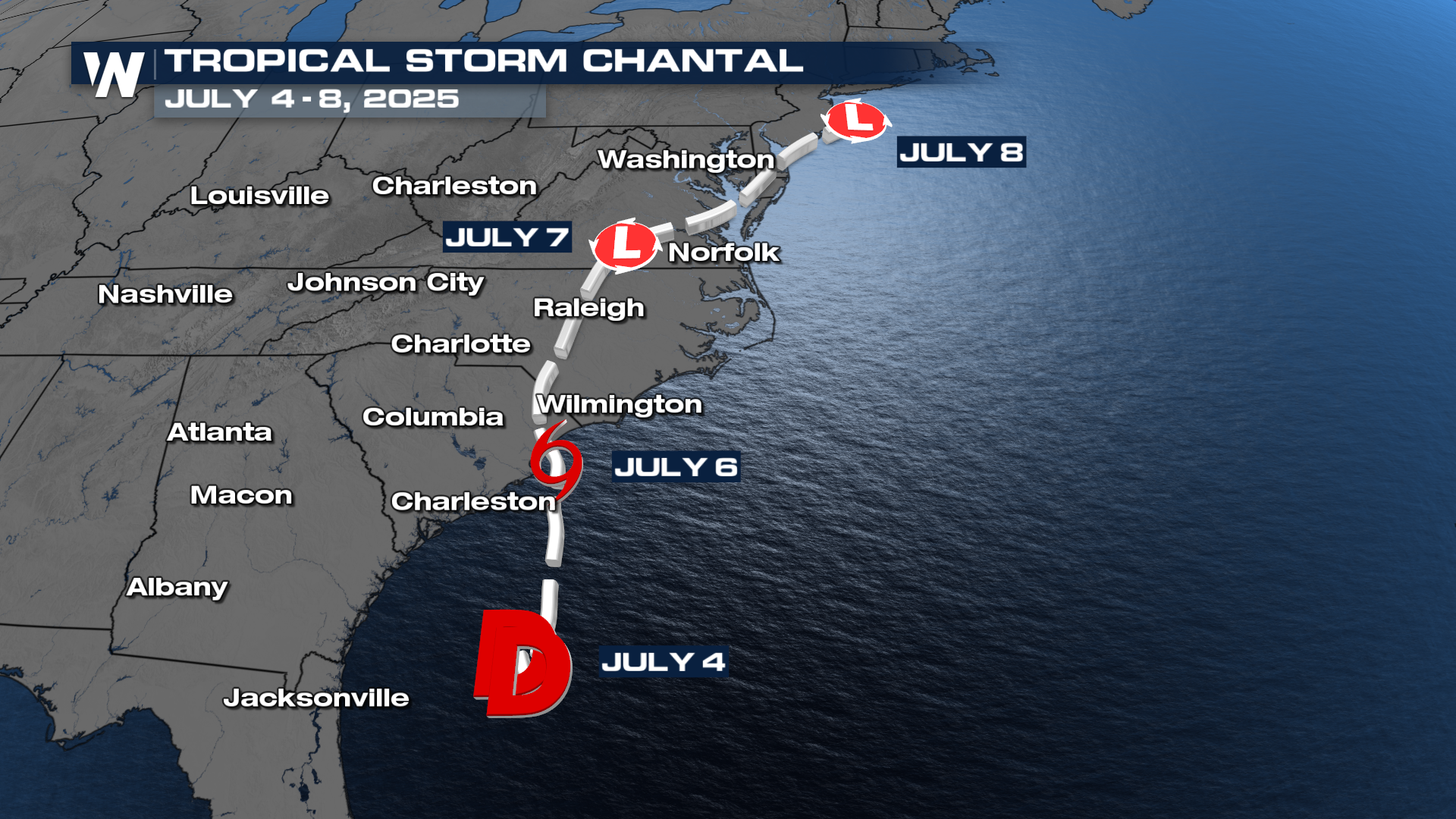 Chantal was the only storm to make landfall in the U.S., bringing excessive rainfall and flooding to North Carolina.