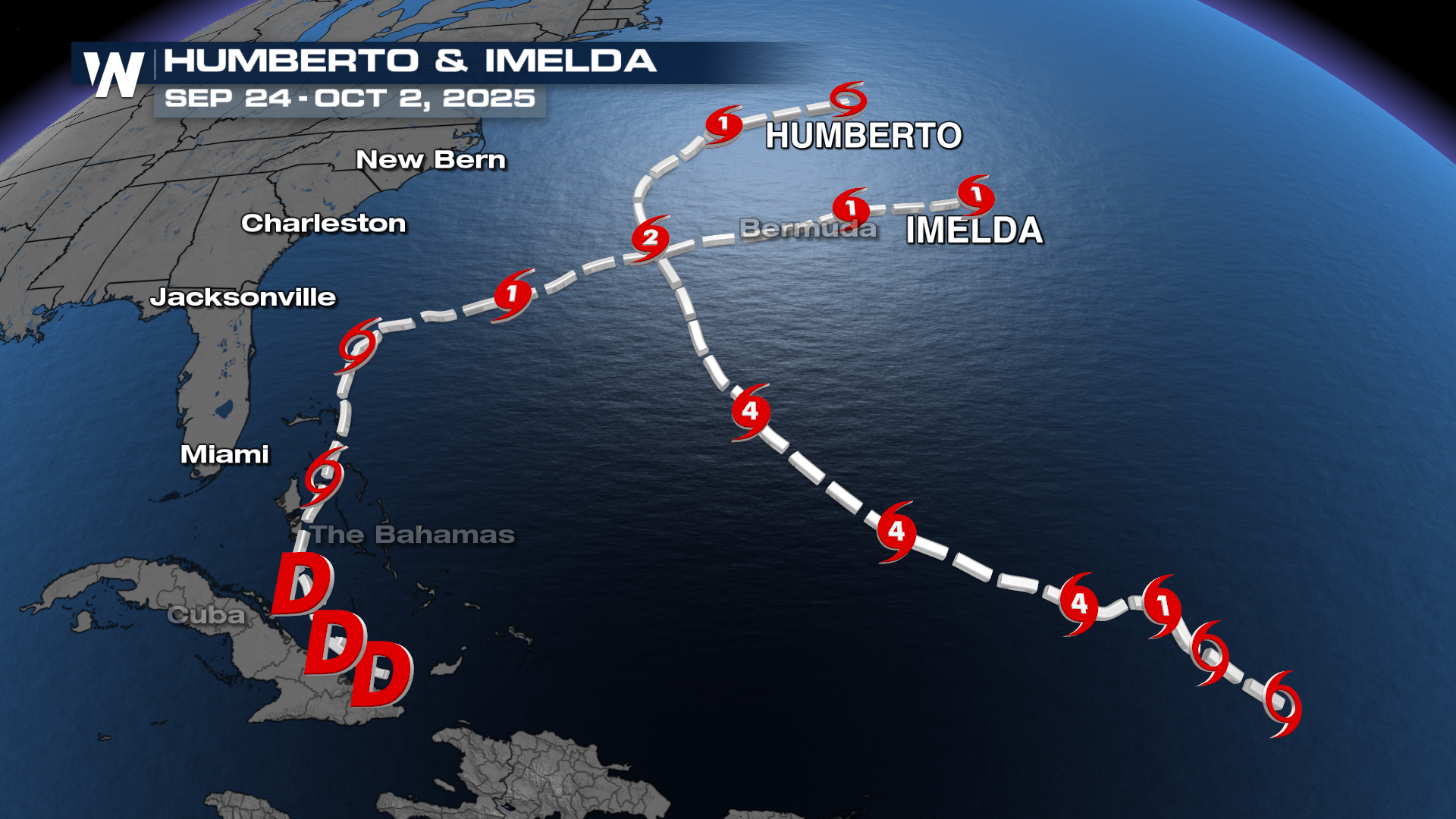Hurricane Humberto became the second Category 5 hurricane, and soon after, Hurricane Imelda developed and became the final storm of September. Humberto was helpful in pulling Imelda out into the Atlantic and away from the U.S. coast. Still, despite the fact that they were thousands of miles away, they still brought coastal erosion to the Outer Banks for North Carolina.
