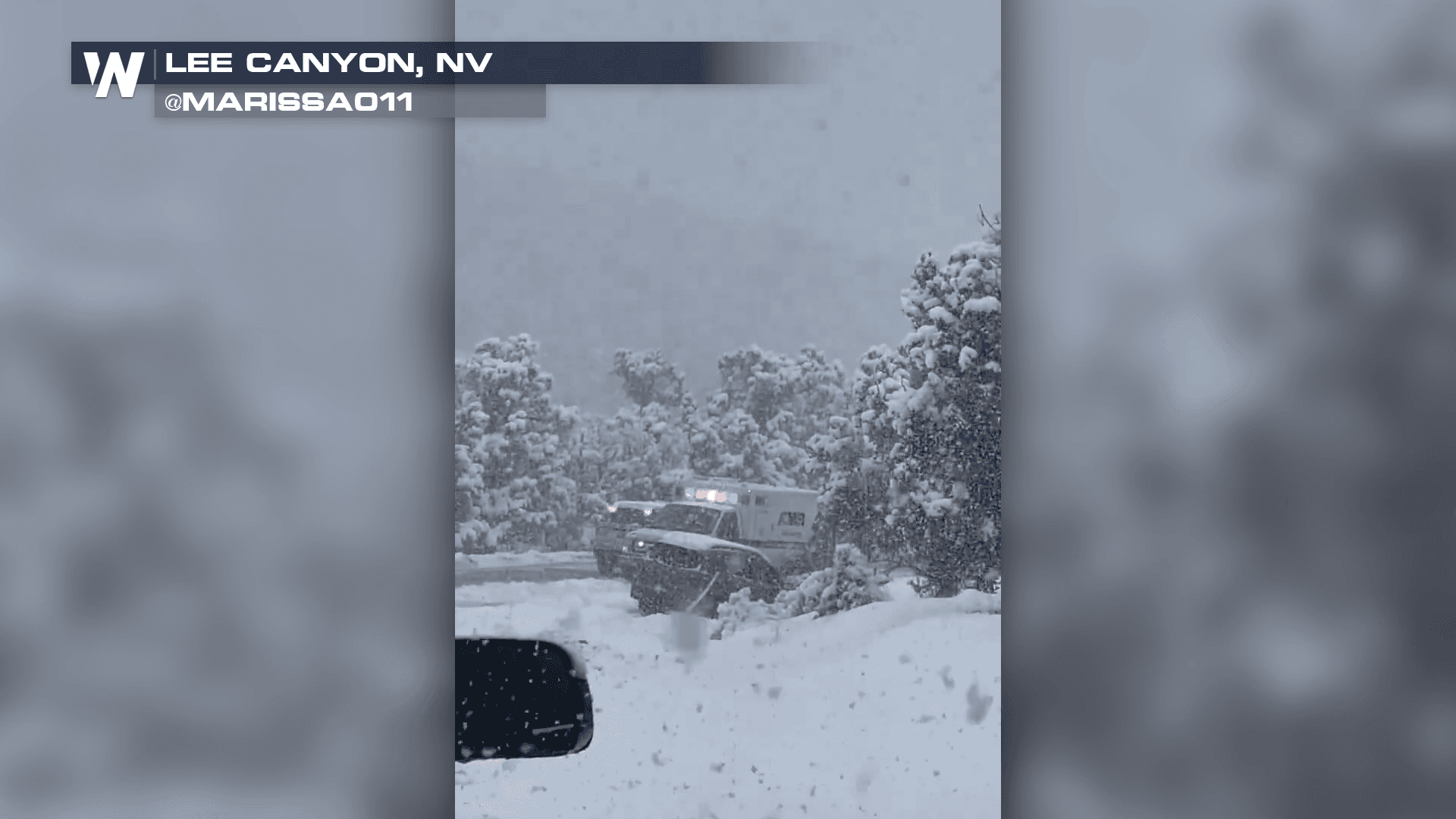 Below are the scenes out of Lee Canyon, NV. For more on the ongoing snowfall and conditions out west: Heavy Snow in the California Mountains.