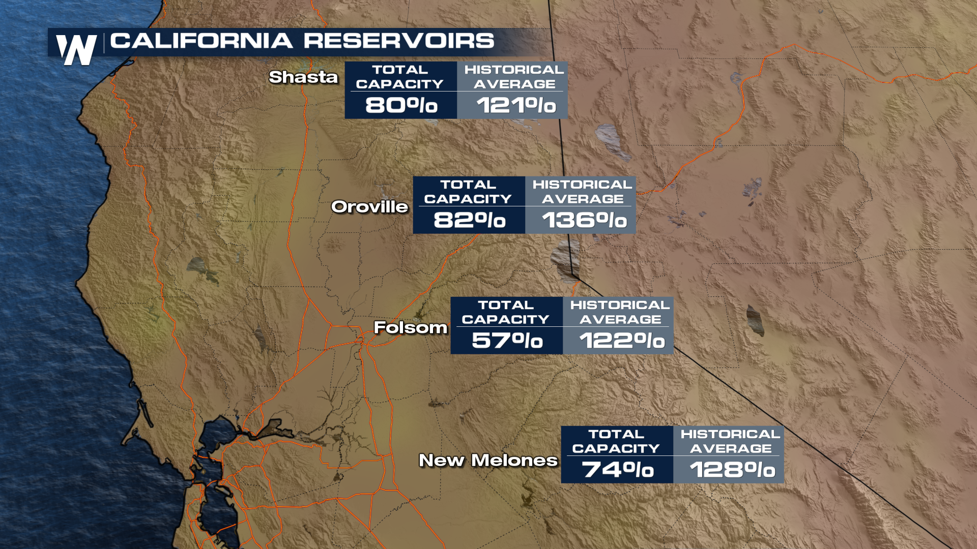 The good news is California has had three wet winter seasons preceding this year, which has left reservoirs with plenty of water. About 30 percent of the state's drinking water comes from the snow pack.