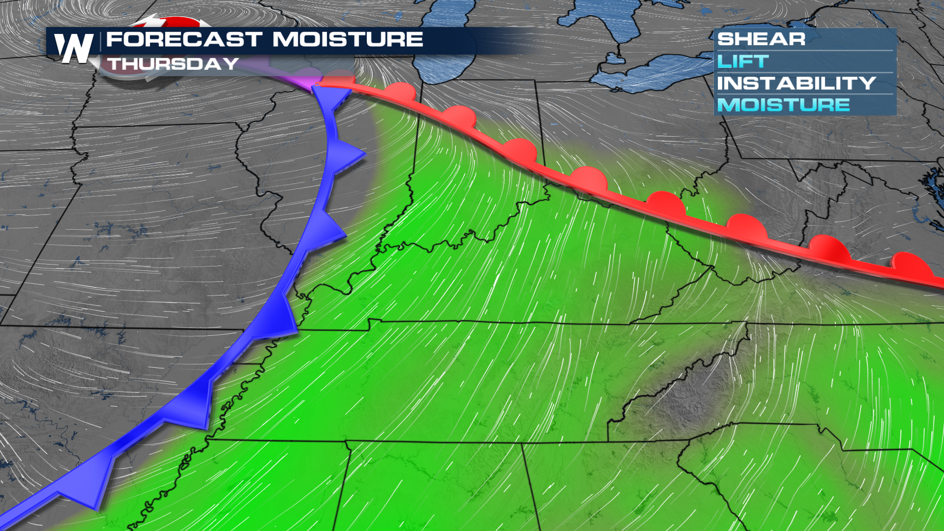 So what gives? This particular model limits the unstable air by the afternoon and pushes through the front early. If that happens, the severe threat would likely be limited. However, enough other models slow down the front, and develop more unstable air by Thursday afternoon. The Storm Prediction Center is already monitoring an area around Indianapolis, St. Louis, and Lexington.