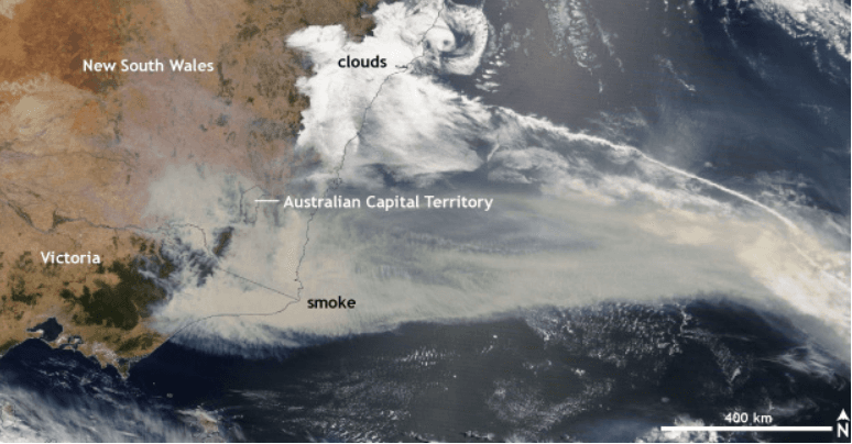 Rebecca Lindsey] Terrible wildfires raged through parts of southeastern Australia in the first days of 2020, and the news has been filled with stories of tragedy and destruction in communities in New South Wales and Victoria. Smoke shrouded the nation’s capital, Canberra, and spread out across the ocean as a yellow-brown river.