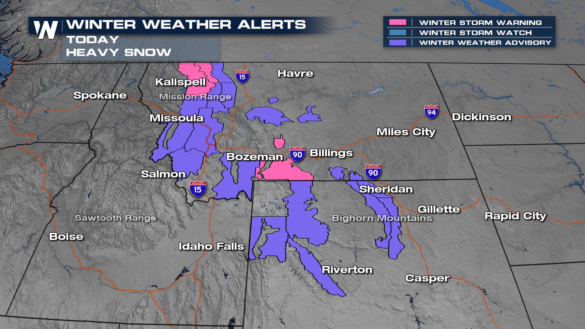 Cold air behind the front has started changing rain to snow from Montana into Wyoming with more heavy snow for mountain areas into Sunday night.
