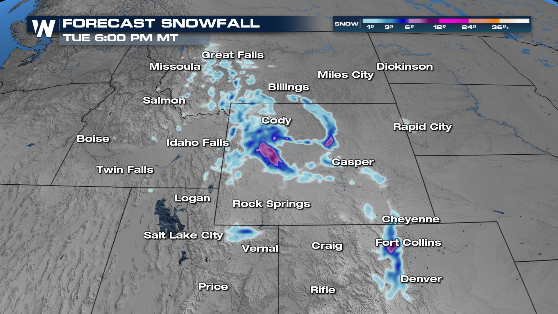 ROCKIES - A strong, upper-level low-pressure system is moving through the western United States, bringing heavy rain, thunderstorms, snow, and wind. Much cooler temperatures are moving in as well, particularly behind a trailing frontal system, which will help produce heavy mountain snow.