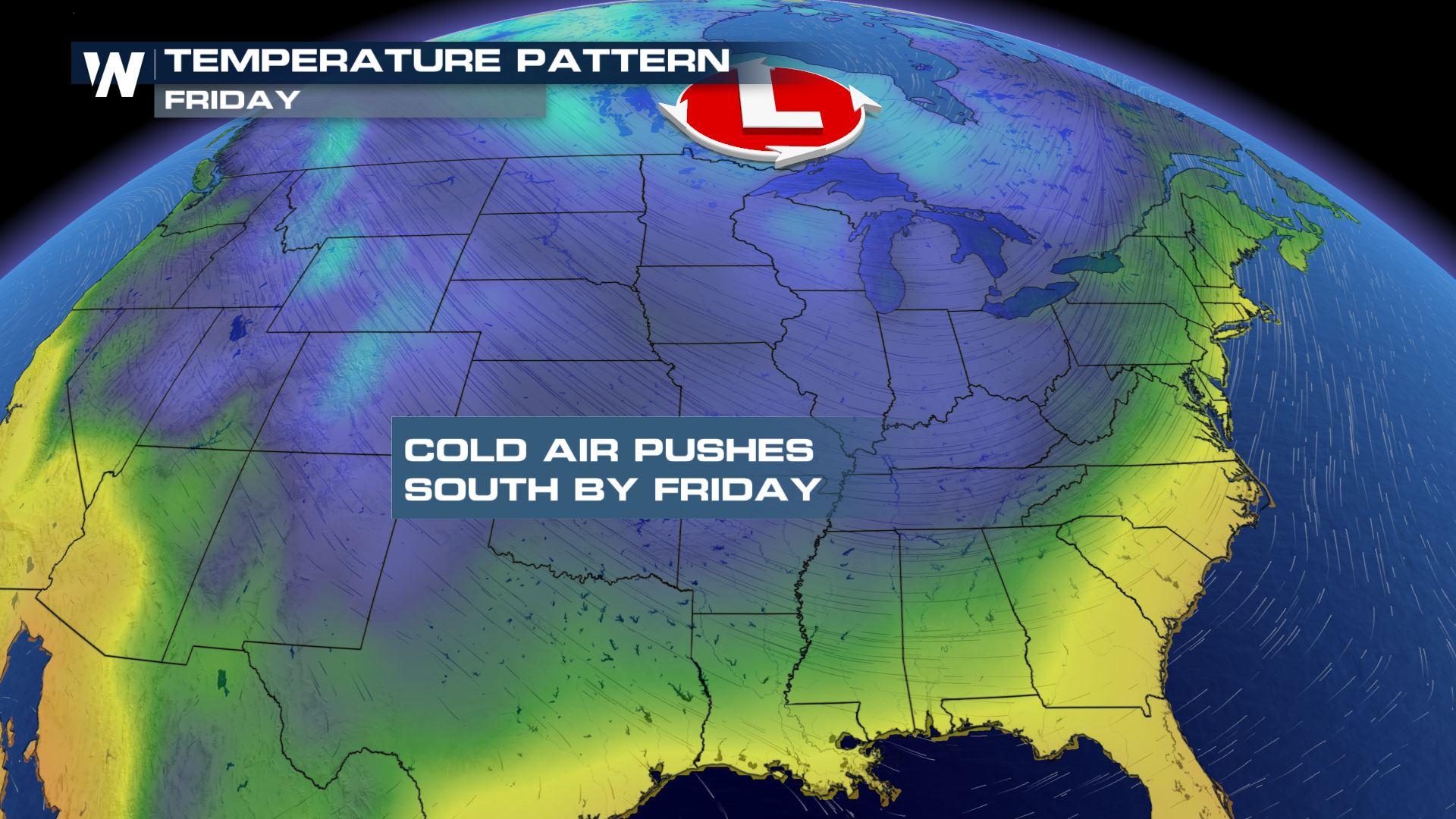 A big dip in the upper-level winds (referred to as a trough) will push deep into the southern U.S. by the end of the work week. This will be a taste of what is on the way in the coming months as the cool down will be short-lived.