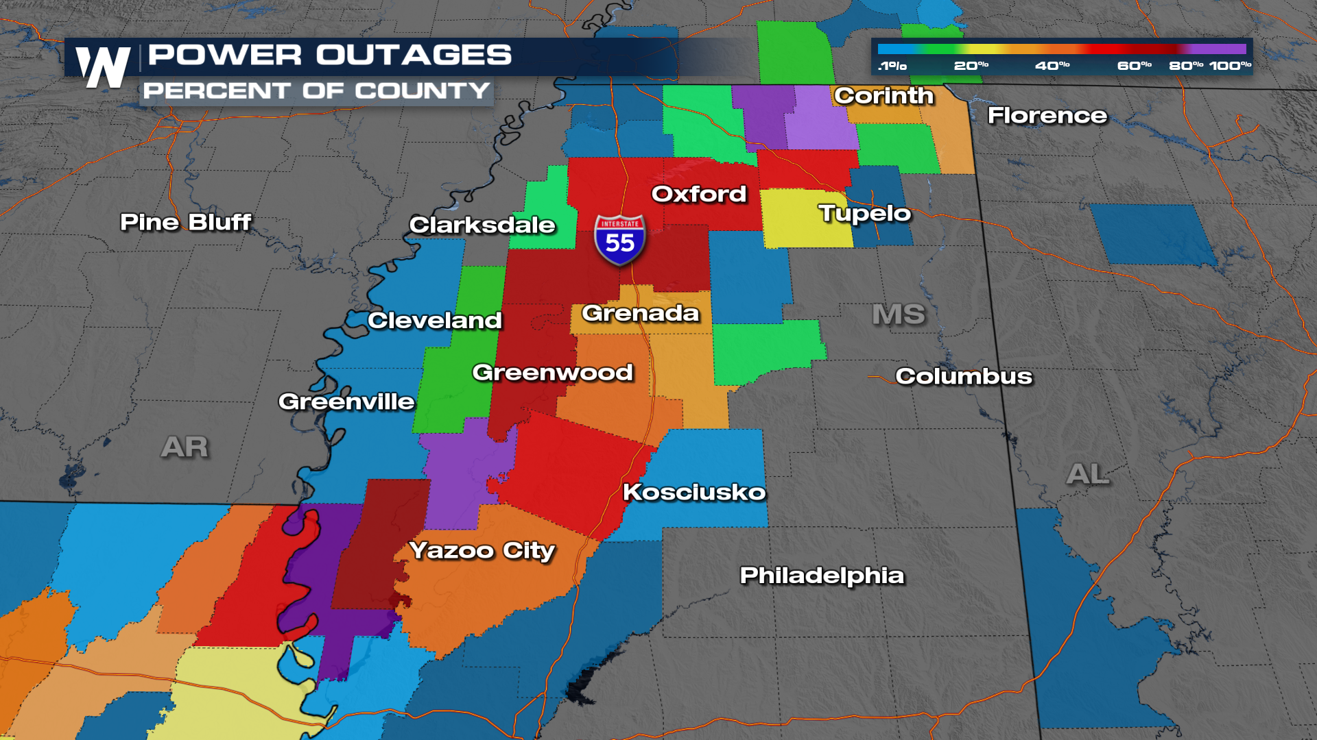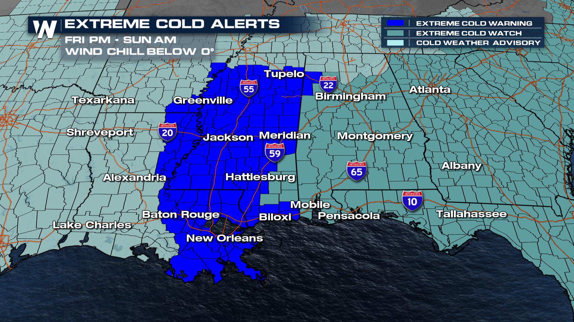 The Mississippi Delta region was particularly hit hard. Unfortunately, Extreme Cold Warnings are now in place for these same areas. The warnings extend south through New Orleans and the bayous.