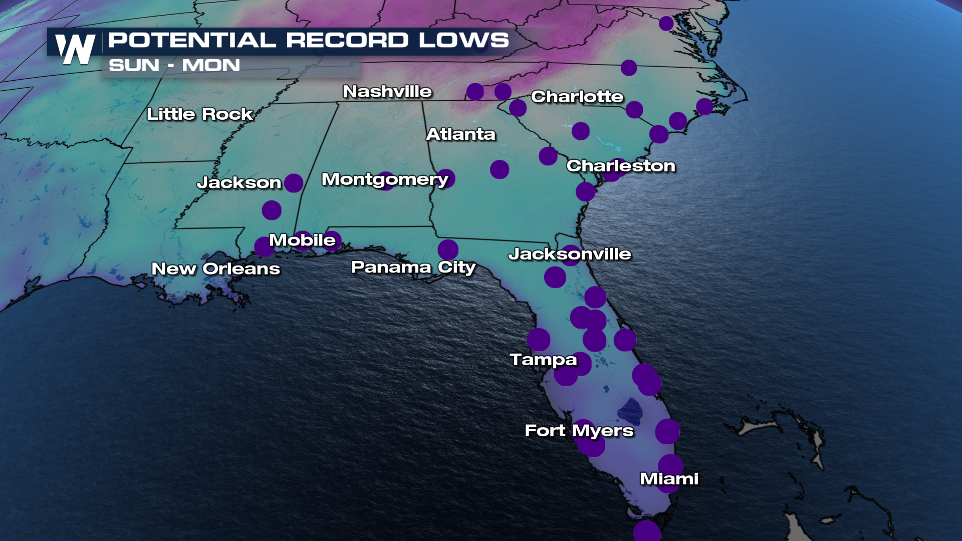 As of now, Sunday morning is forecasted to be the coldest night for most, with widespread record-breaking cold a possibility. Dangerous cold will be possible through Monday morning, potentially as far south as the Lower Keys.