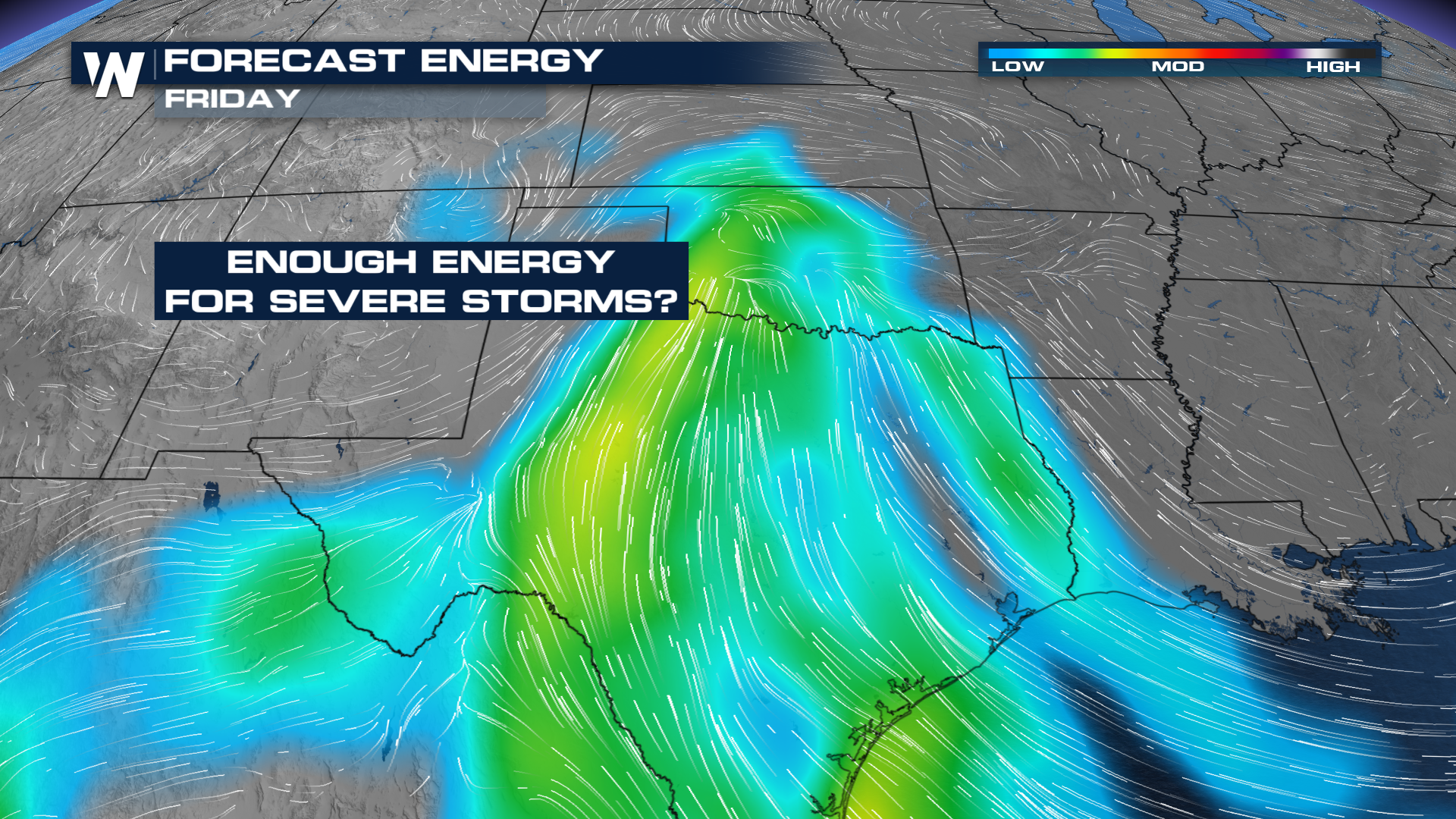 However, it's where that system ends up by the weekend that is raising some eyebrows. As this system emerges out of the Rockies, it will be moving into notably warmer temperatures, which could be just enough to power storms into the severe threshold.