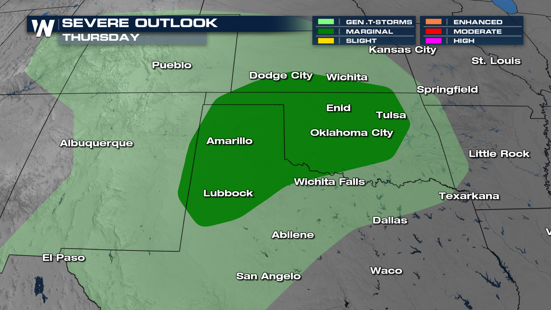 But will this system have enough ingredients to talk about another weekend severe weather event? The Storm Prediction Center is already highlighting areas of the panhandle of Texas and western Oklahoma for a low-end threat by Thursday