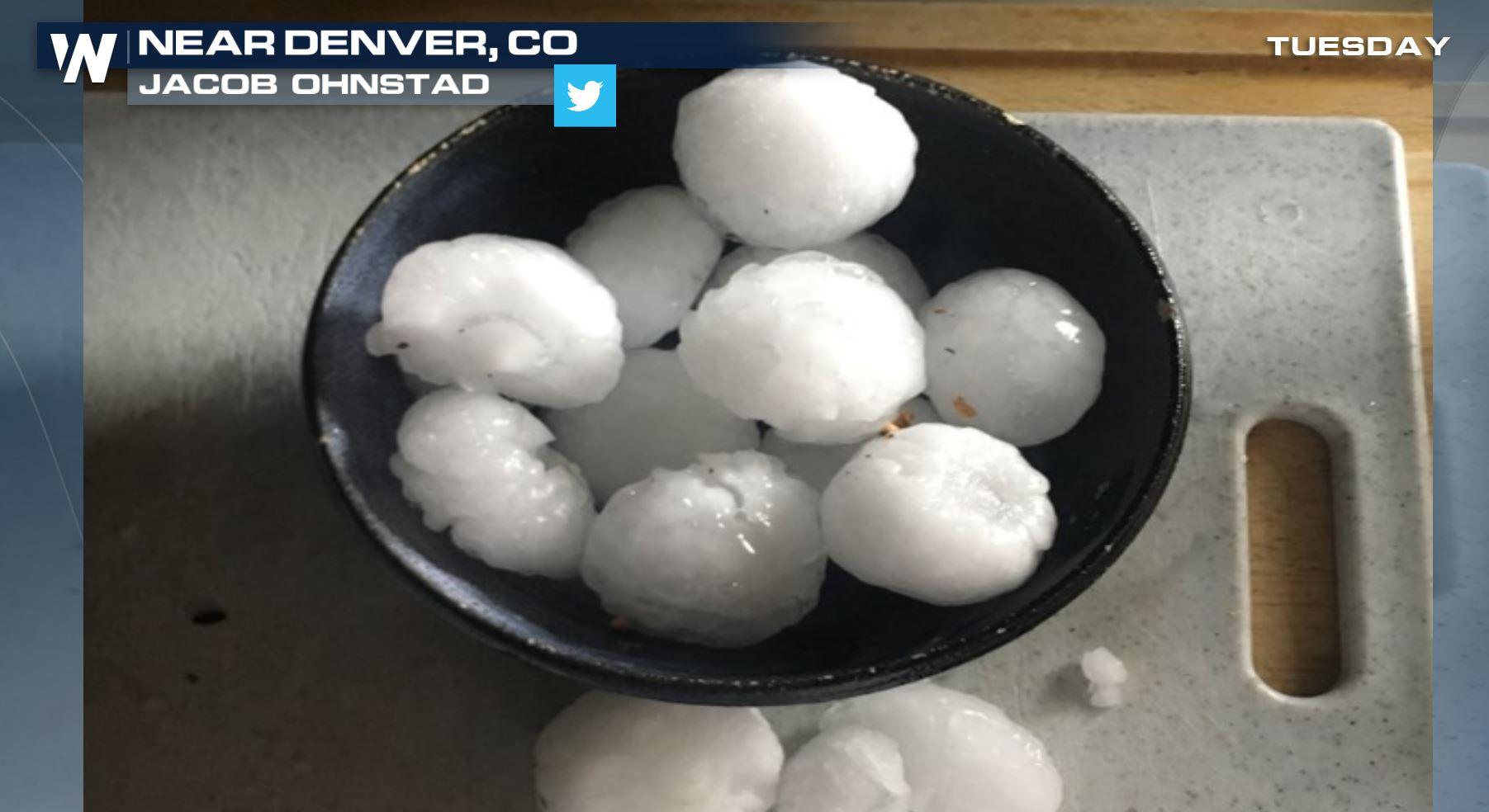 Remember, Denver is one of the hail capitals of the country so the Mile High City is no stranger to hail storms; however, golf ball to baseball size hail is a little bit of an exception. On Monday, Denver saw golf ball size hail as well. The lightning show on Monday night was no slouch either.