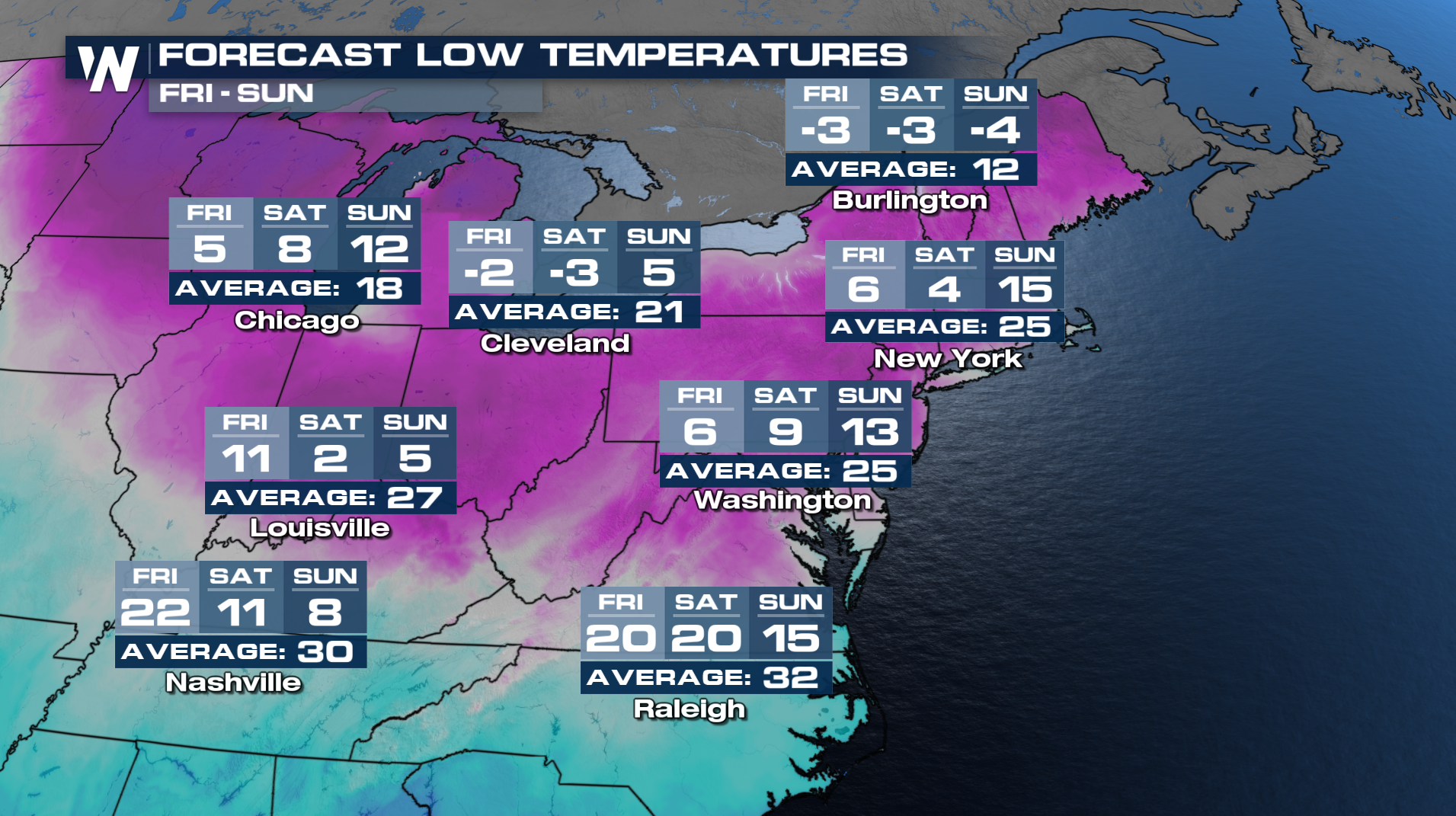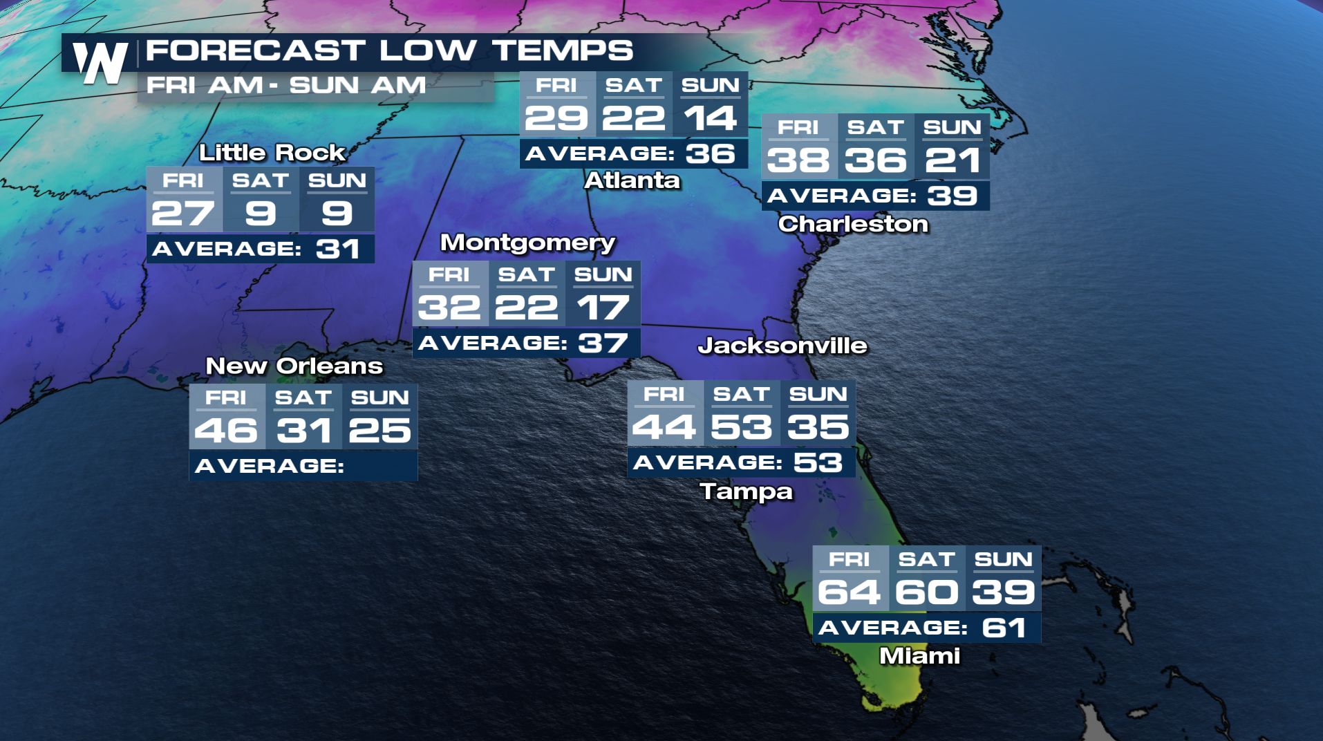 For the Southeast, cities like Tampa will see lows in the 30s Thursday morning with highs by Sunday in the 40s!