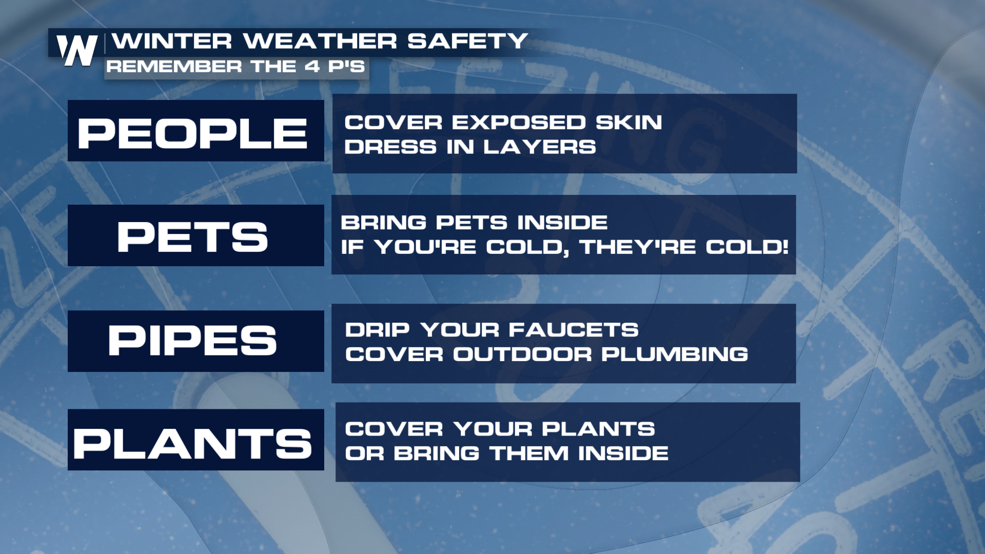 If you're across the deep south, extreme cold weather doesn't come too often. However, when it does, remembering the 4 P's is always helpful.