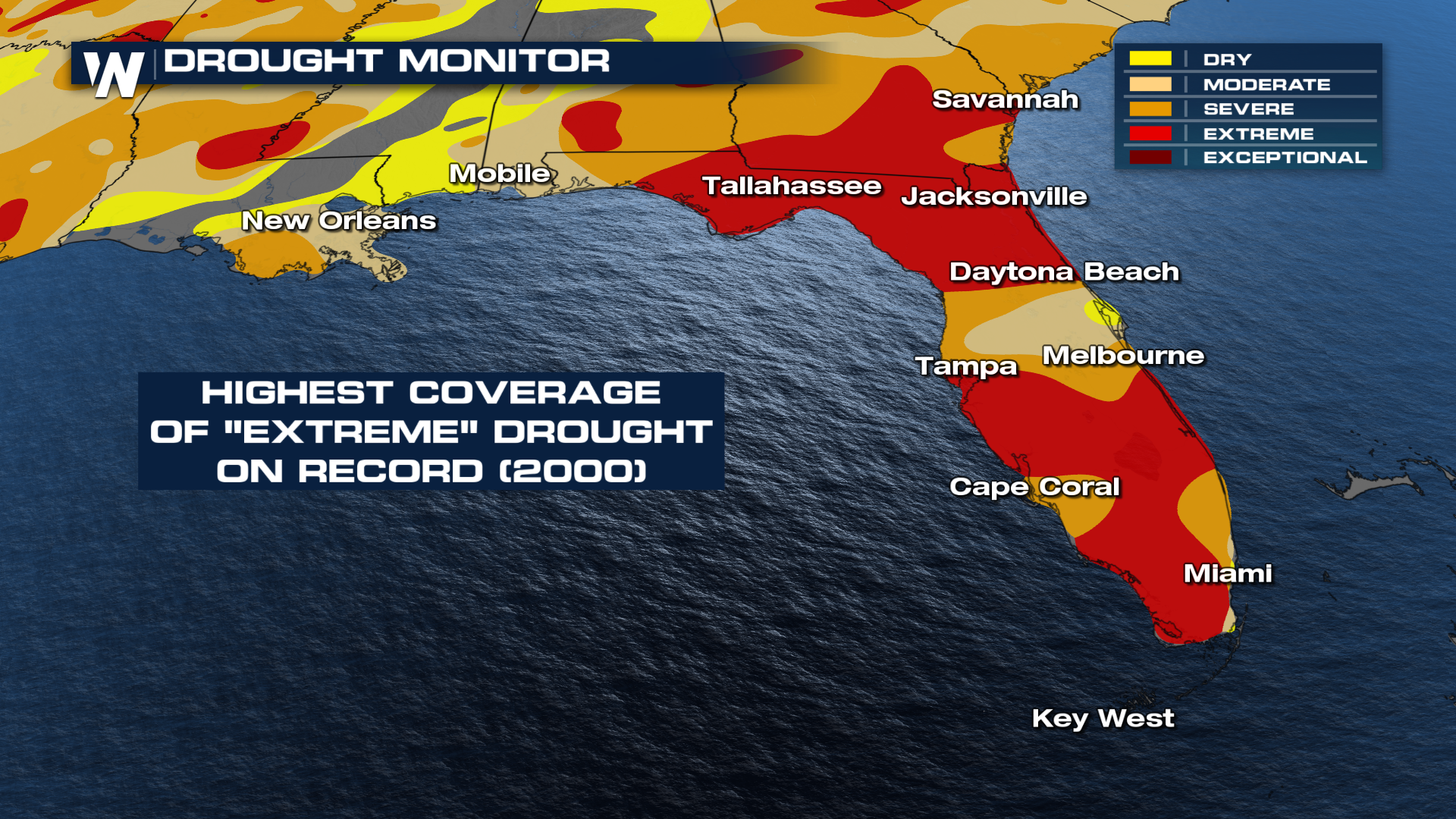 Unfortunately, much of Florida is experiencing Extreme Drought conditions. The coverage of this drought is the highest recorded since 2000. With strong winds, low relative humidity, and dry fuels, Red Flag Warnings and Watches have been issued for Louisiana, Mississippi, and most of Florida.