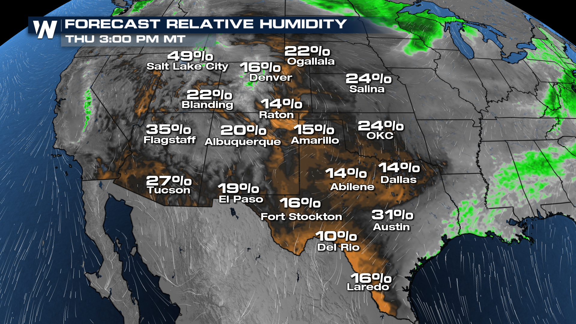 The combination of relative humidity in the teens and single digits, combined with gusty winds, will increase the fire threat. Please use caution if burning, as any fire that develops can spread rapidly.
