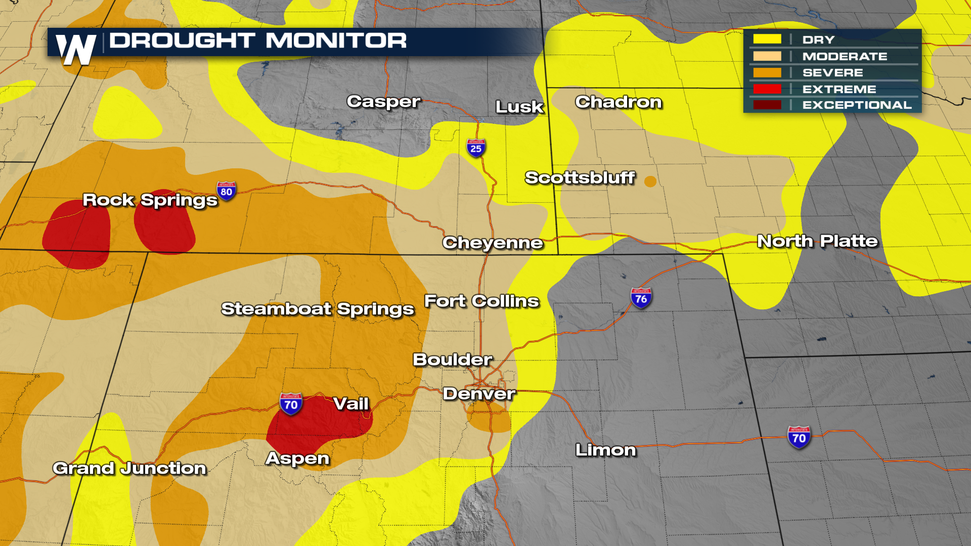 Enhancing the wildfire potential is the amount of fuel. The Front Range of northern Colorado into Wyoming has been very dry as of late. A Moderate to Severe Drought remains highlighted across the entire Red Flag Warning area.