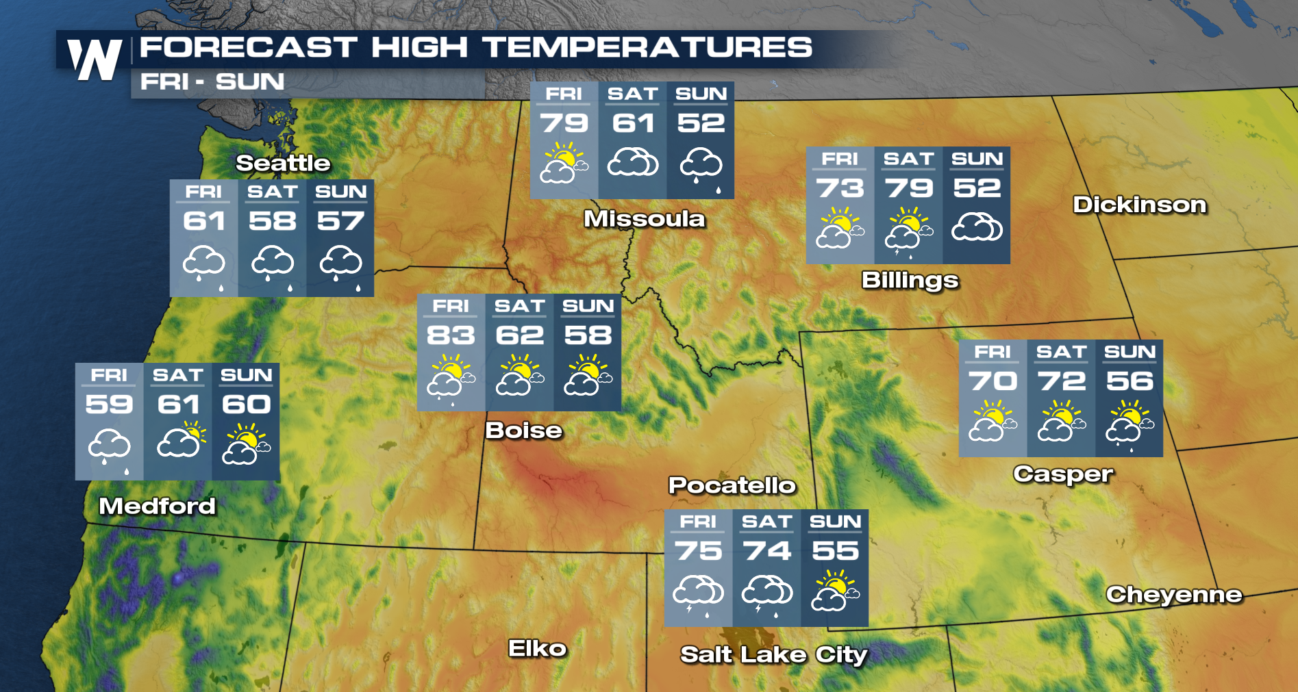 A sharp cooldown is on the way for the Pacific Northwest so it is about to look and feel a lot more like fall! A few upper-level disturbances diving out of the Gulf of Alaska will deliver the chilliest air of the season to the region. Accompanying these systems will also be rain, wind, and even the first measurable mountain snow for parts of Washington, Oregon, Idaho and Western Montana this weekend.