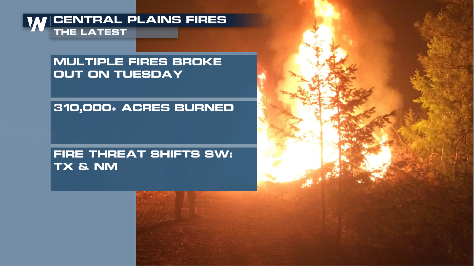 PLAINS - Multiple active fires broke out earlier this week across the Plains of Kansas and the panhandles of Texas and Oklahoma. Fire danger continues into the weekend, as additional Red Flag Warnings have been issued for southern Texas.