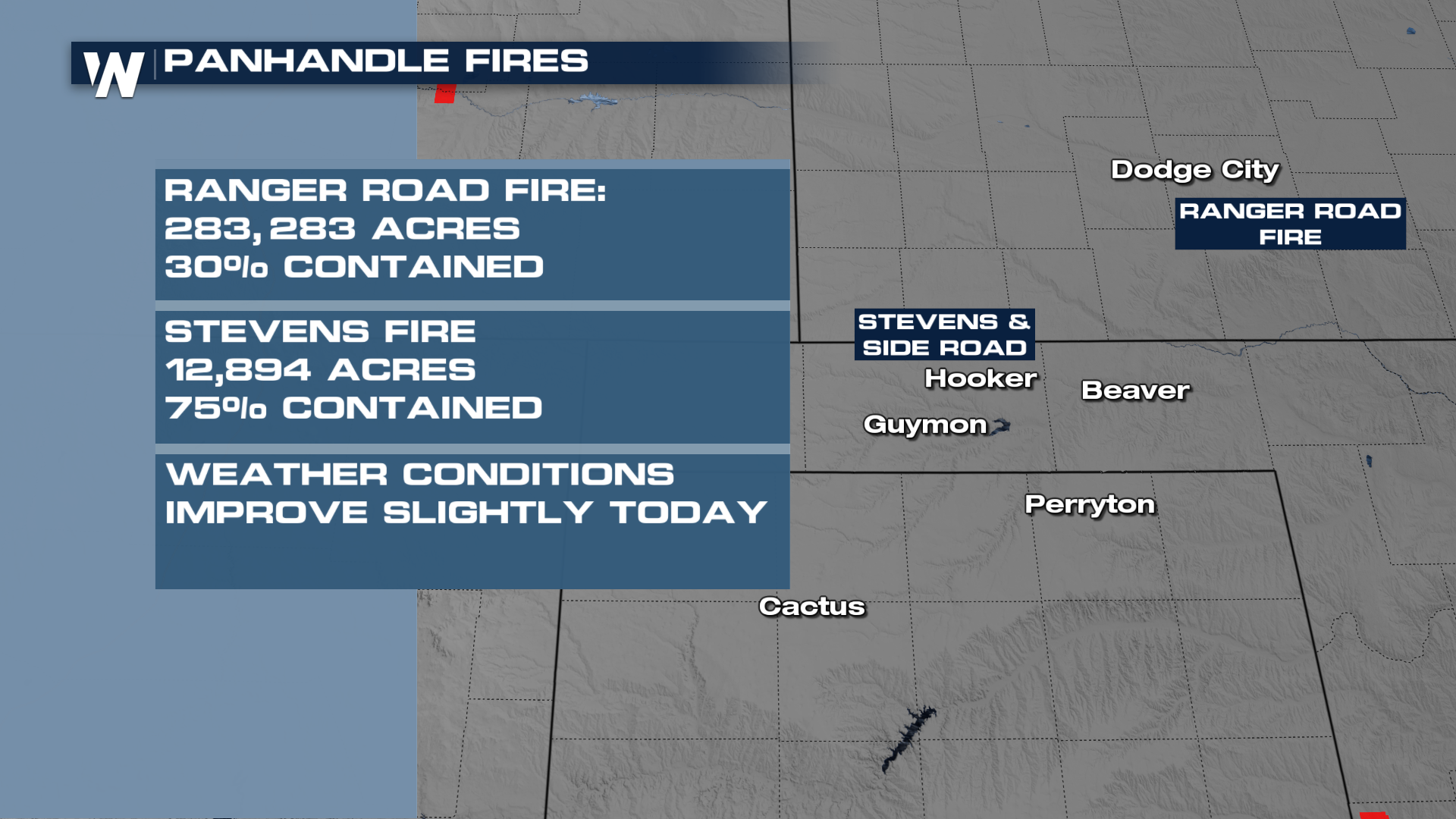 From the Oklahoma Panhandle and into southwest Kansas, the Ranger Road Fire has burned nearly 300,000 acres since Tuesday, with containment now up to 30%.