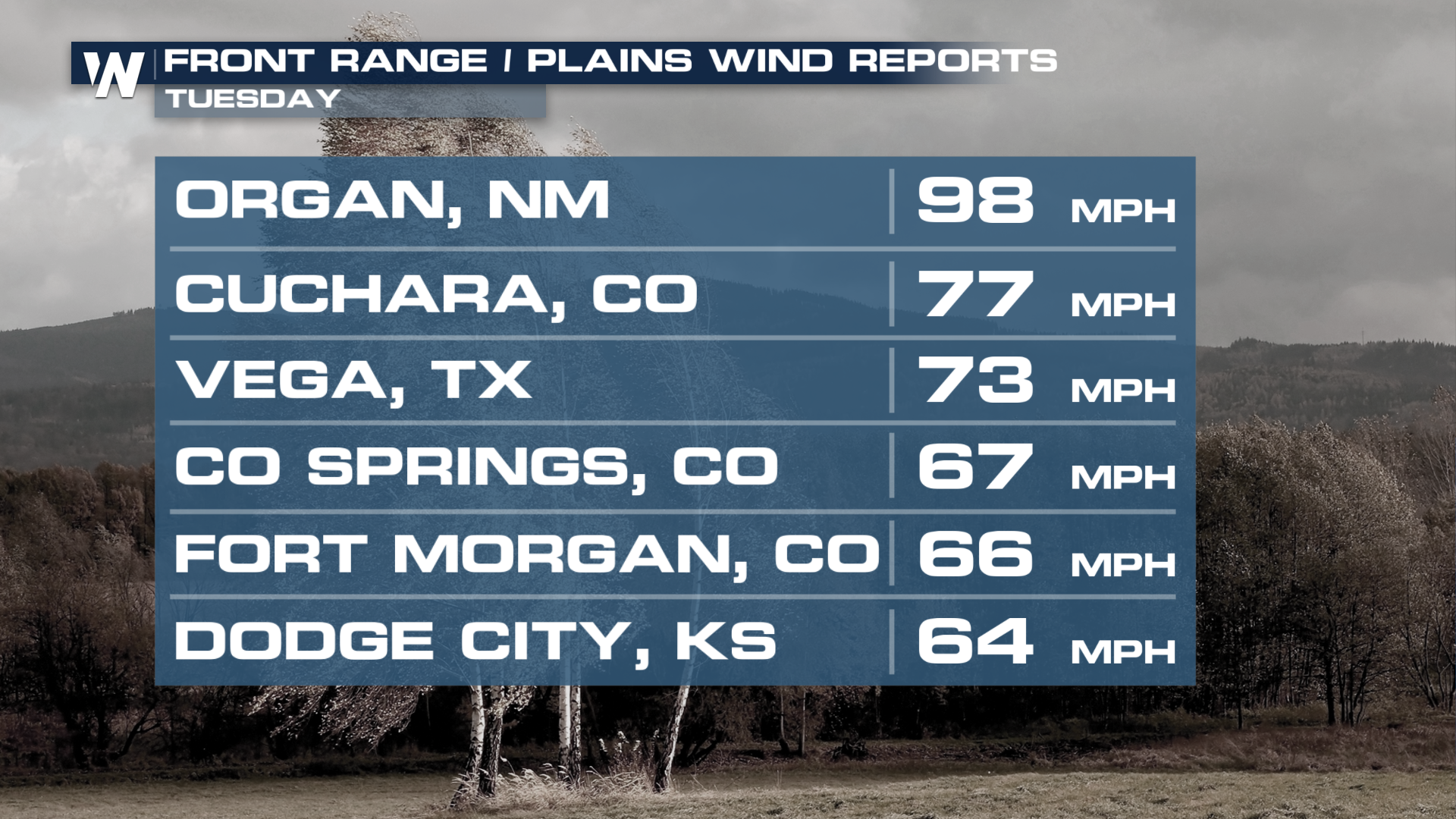 Earlier this week, some winds were clocked close to triple digits! The winds prompted a blowing dust advisory to be issued on Tuesday afternoon, and a 30+-vehicle pileup resulted from brownout conditions along I-25 in southern Colorado.