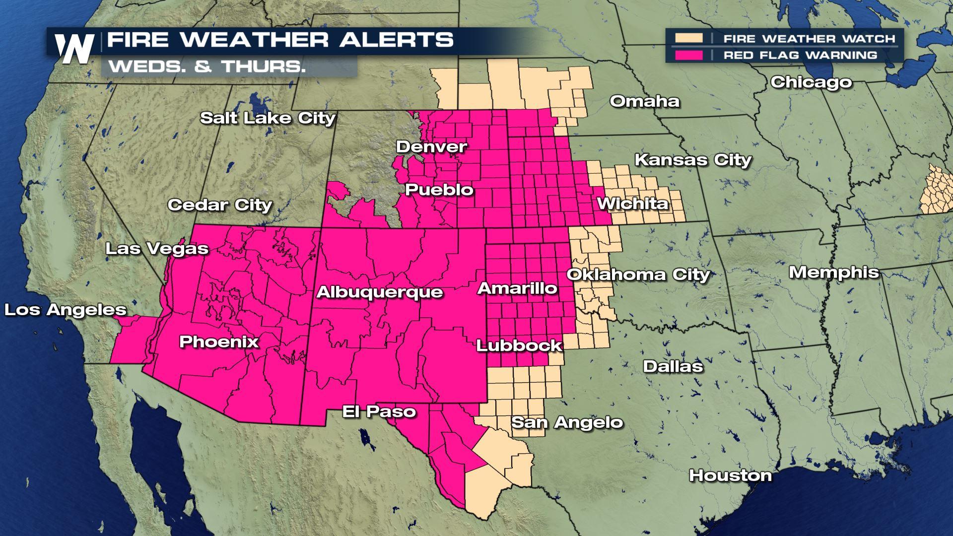 Red Flag Warnings have been issued for Arizona and New Mexico...as well as parts of Colorado, Texas, Kansas and Nebraska.