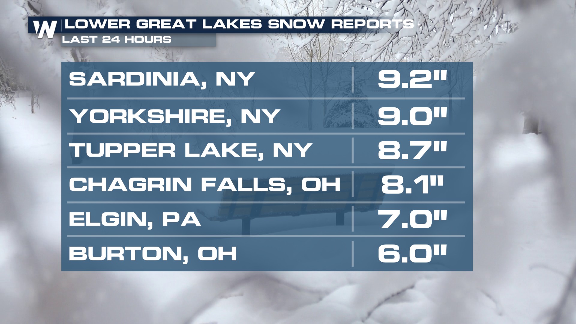 Some areas of the lower Great Lakes have already received more than seven inches of snowfall with this setup.