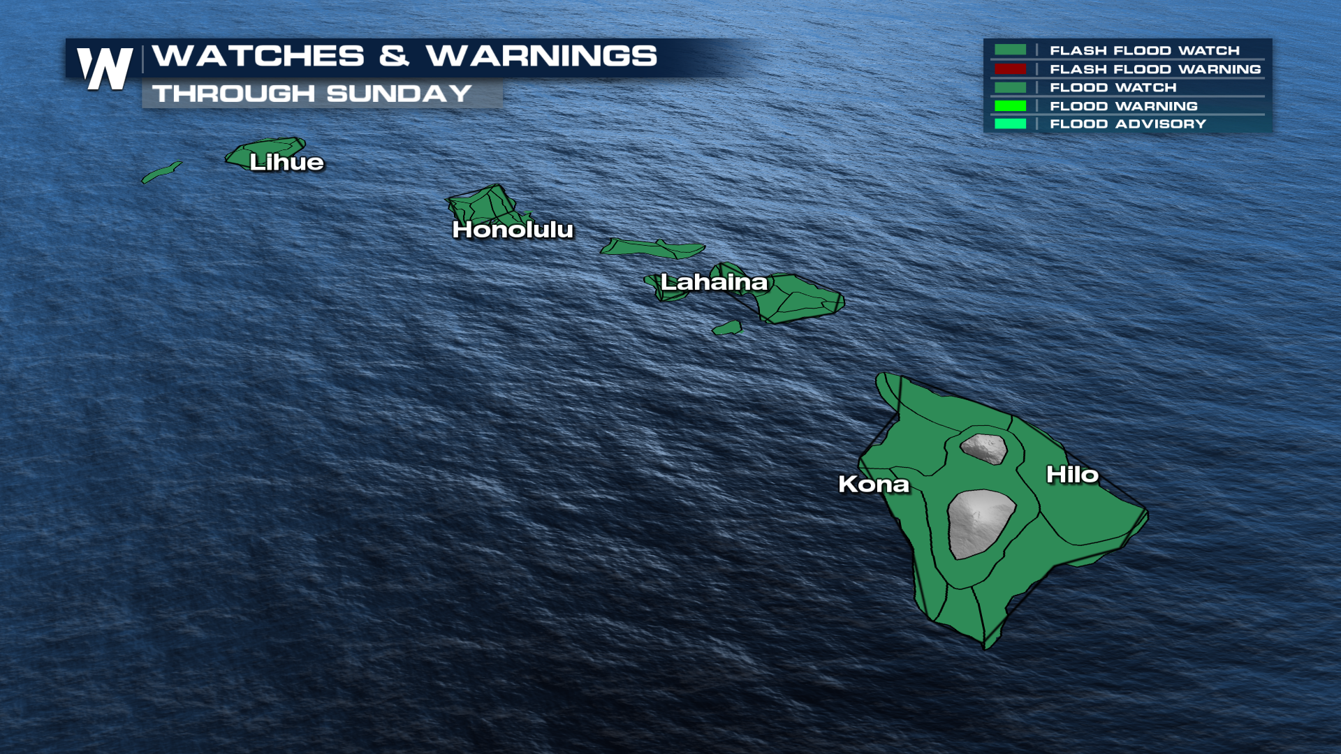 Flood watches are in effect for all of the islands through the end of the weekend. The low is forecast to shift east into next week, leading to sunnier conditions.