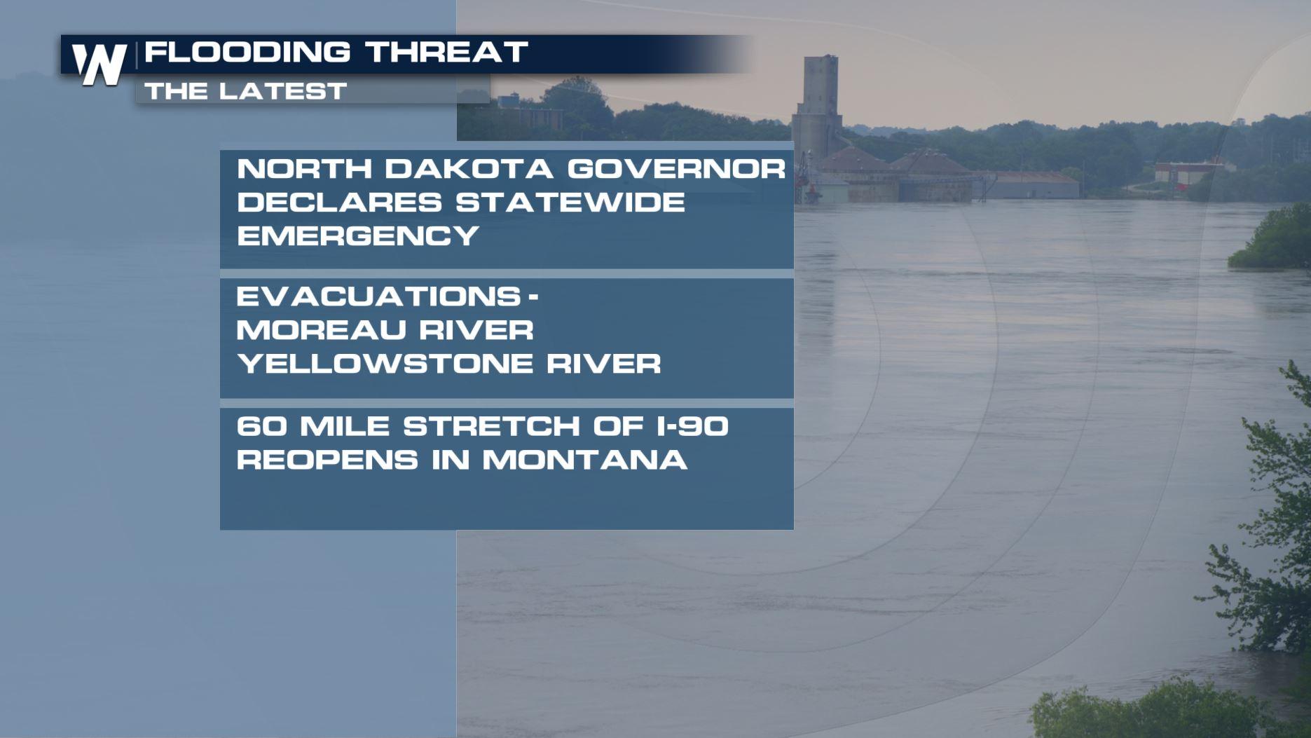 Evacuations have already occurred in parts of the state. At least 50 homes and 110 people have been displaced due to floodwaters, according to the North Dakota Governor's Office. So far, the hardest hit areas and places to watch include (but aren't limited to) the James River Basin, Devils Lake Basin, Red River Basin and the Yellowstone River Basin.